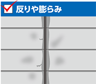 反りや膨らみは雨水や住宅内部からの湿気により水分がサイディングに浸透して含水し、そして乾燥を繰り返すことで発生することが多く、建物内部の腐食も考えられ、早急なメンテナンスが必要です。 |