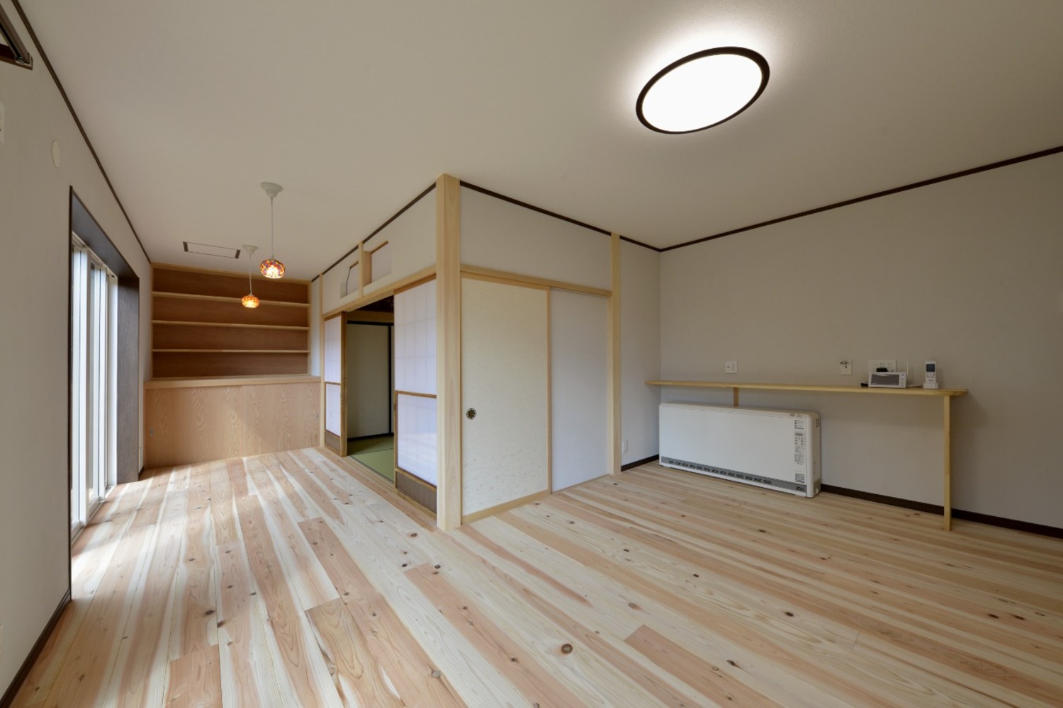 1階・2階ともに床は、杉の無垢材を使用し、足裏にやさしく、経年変化を楽しめます。
