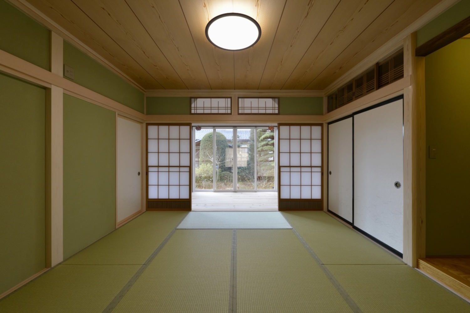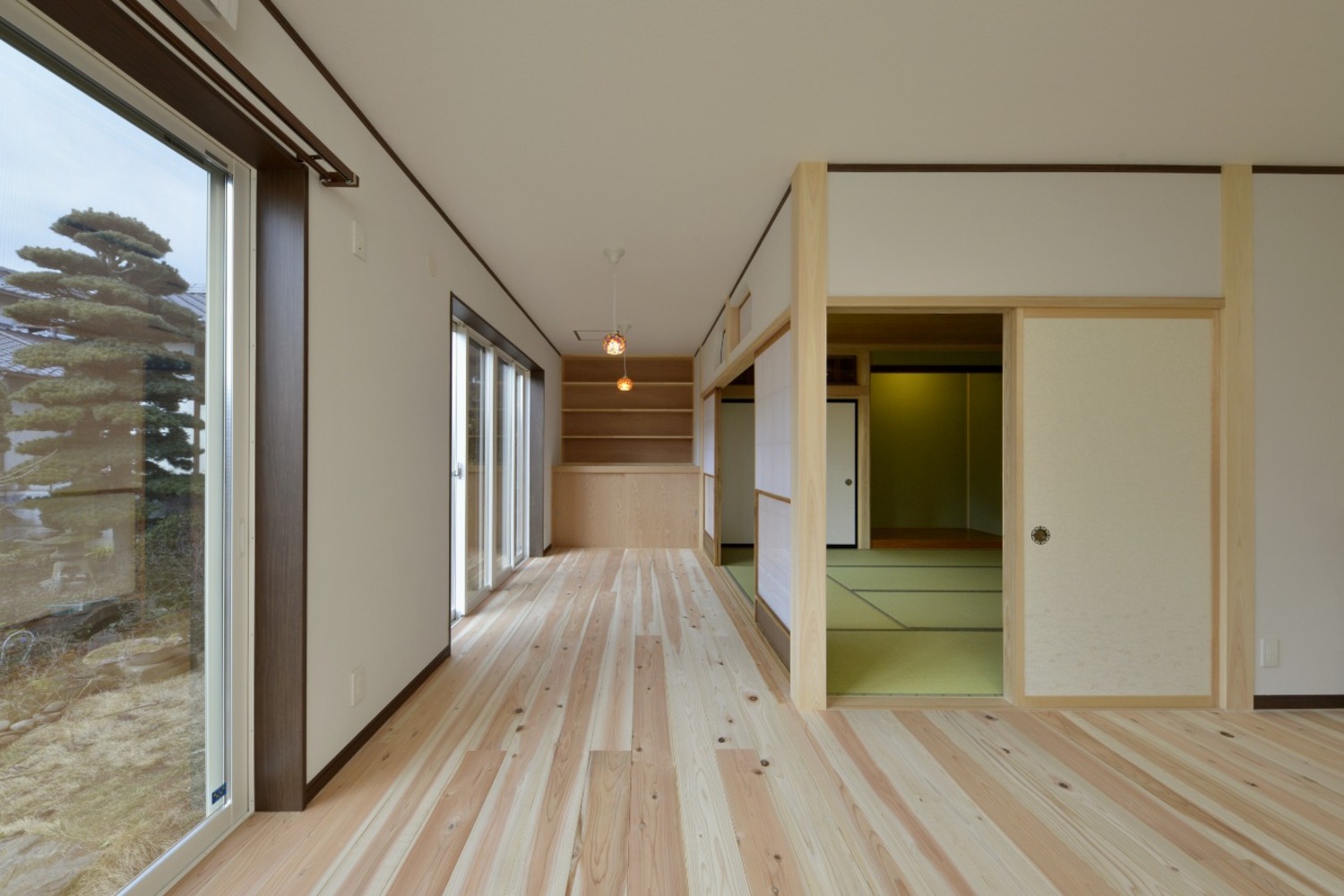南に面した居間続きの和室前広縁は、冬の日差しがたっぷりと差し、夏の日差しを和らげてくれます。