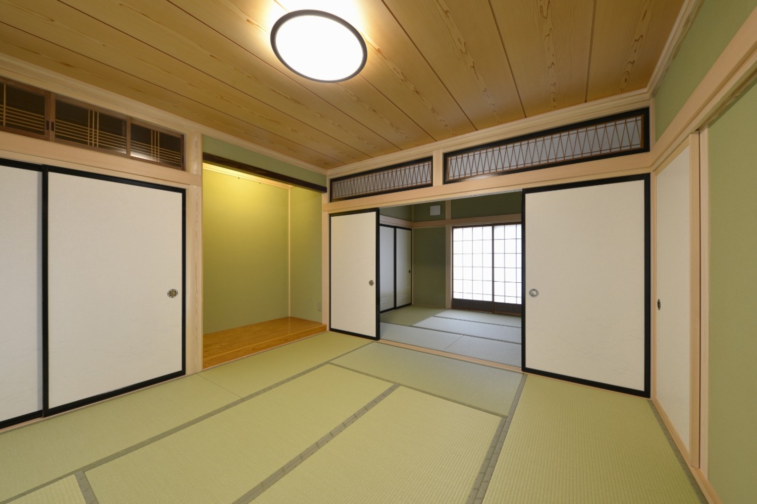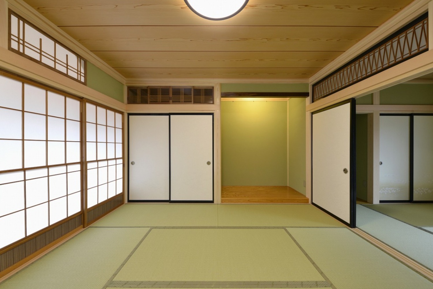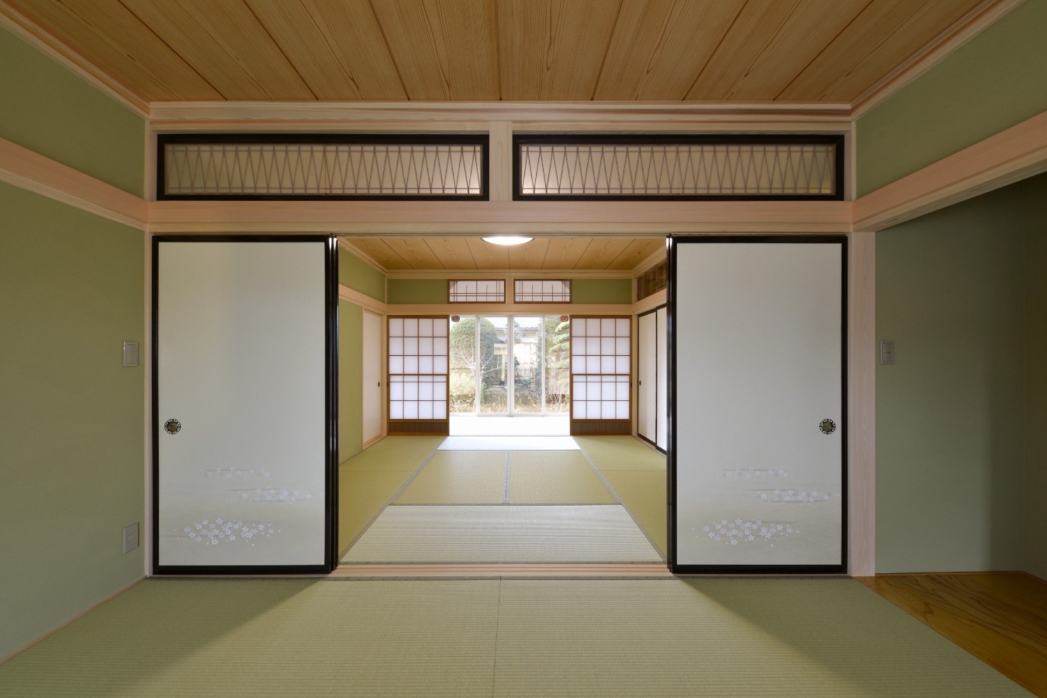 新しい家に経年の建具類が加わり、趣のある落ち着いた部屋に仕上がっています。