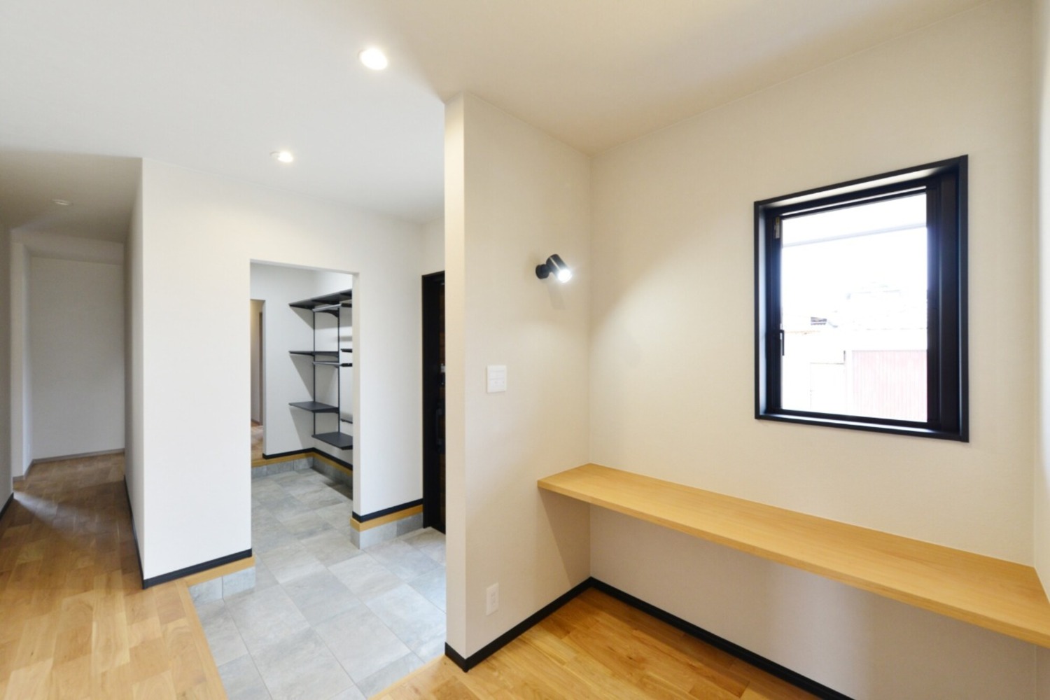 ご家族が帰宅し、その動線を通ると自然に片付いて、リビングに到着するころには整っている。