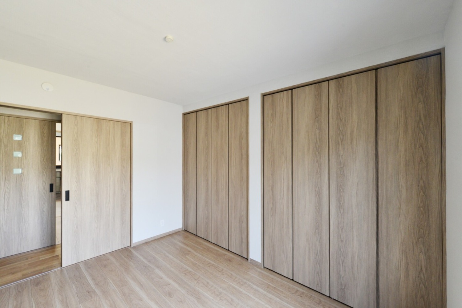 主寝室内装:薩摩中霧島壁 SN-4 ソフトヘアライン仕上げ