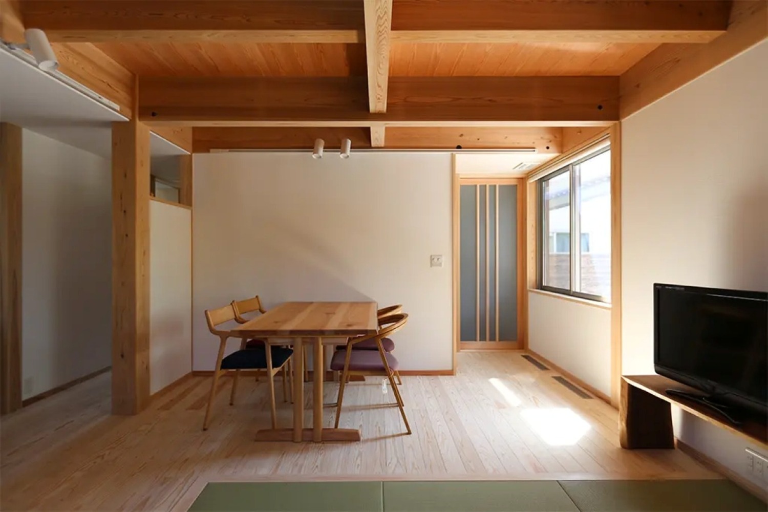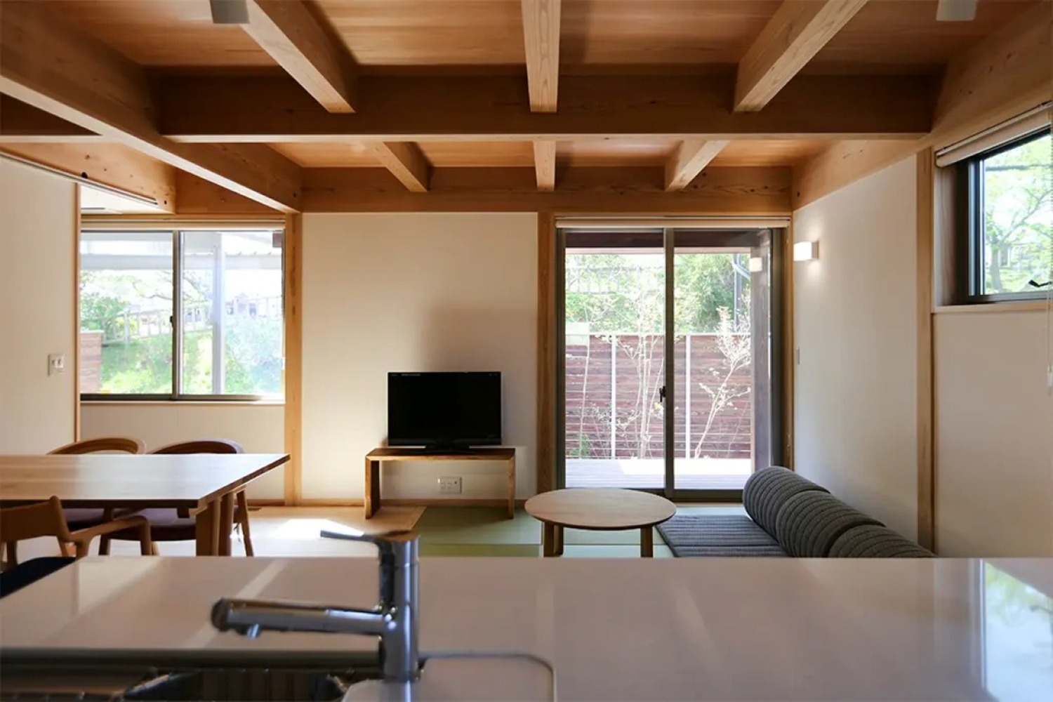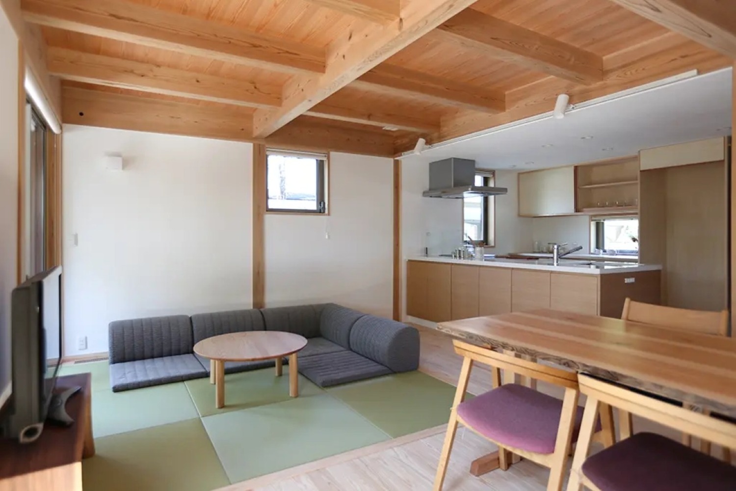 畳リビングでゆったりごろごろ。書斎の窓からは山々が広がり、集中モード全開。