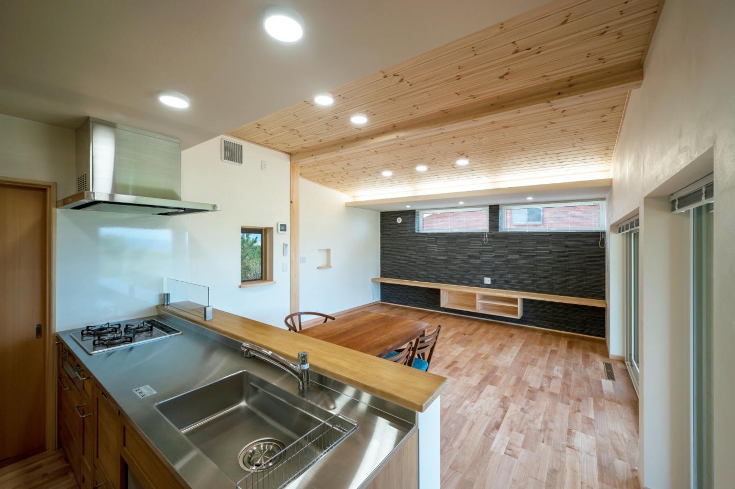 ・天井 :無垢杉羽目板・自然素材クロス・ビニールクロス