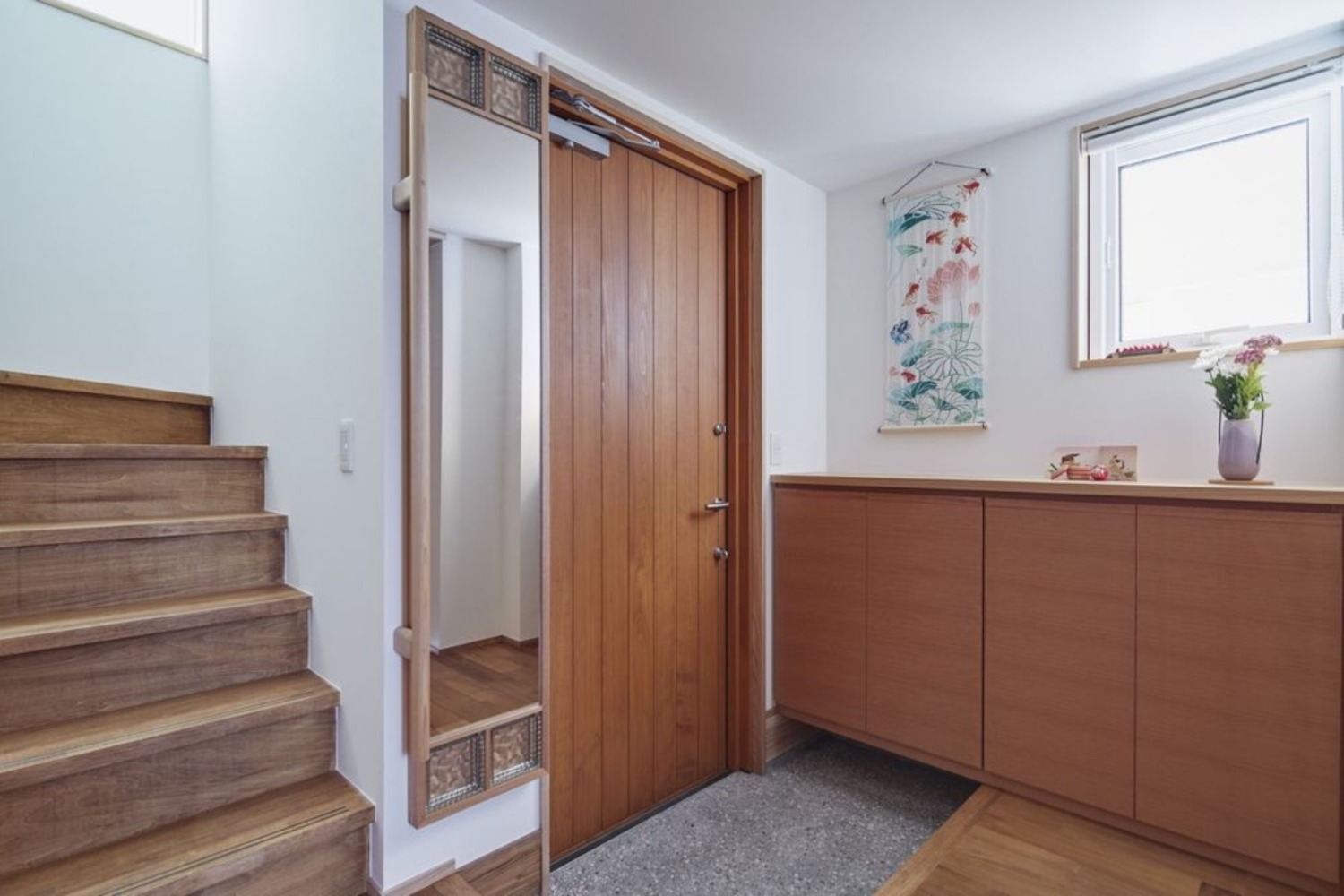 こうしてできた建物という器(うつわ)に対して、Fさまの感性で選び抜かれた家具や小物などのインテリアが、日々の生活に彩を与える形で見事に調和。「新居に住み始めてから、お花を欠かさない生活を継続中!」という言葉が現すとおり、四季を感じる日本の暮らしを楽しむ姿がとても印象的なお住まいです。