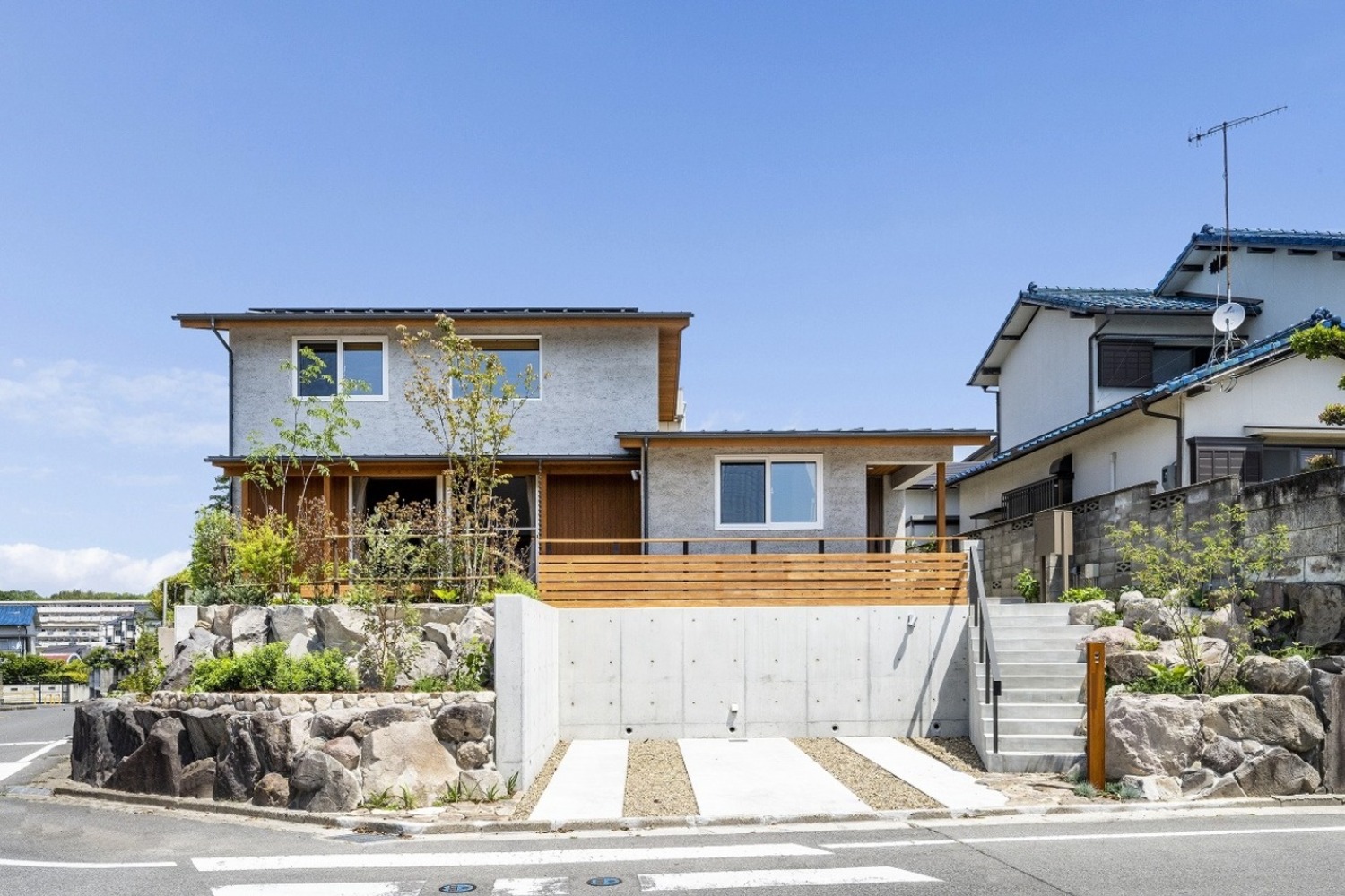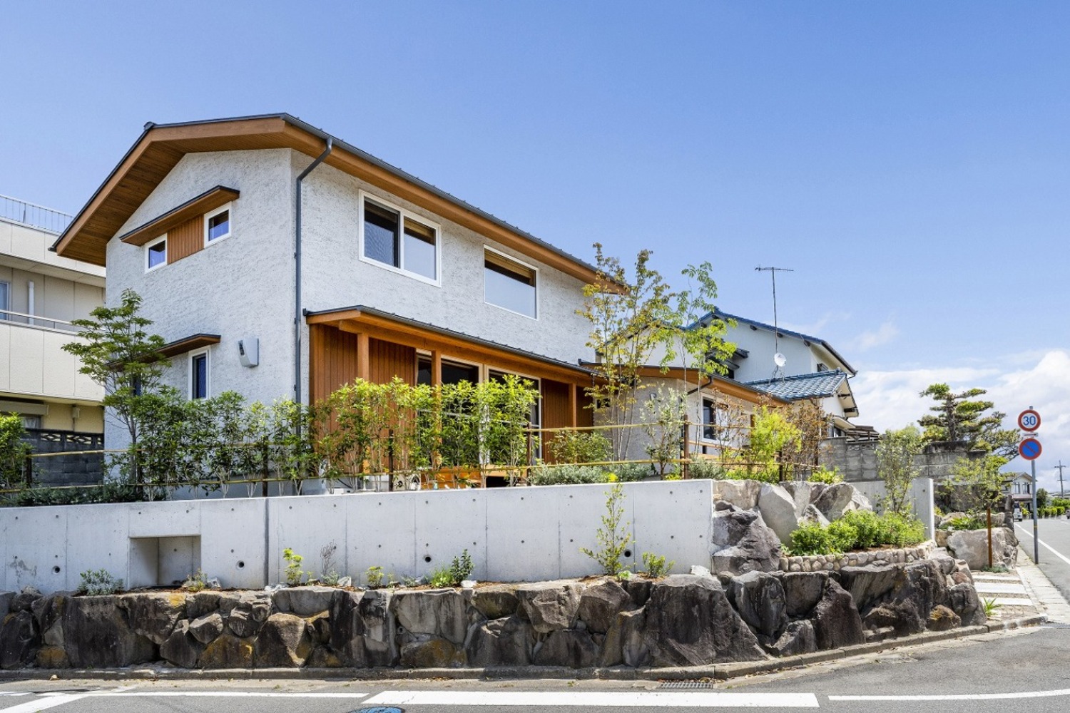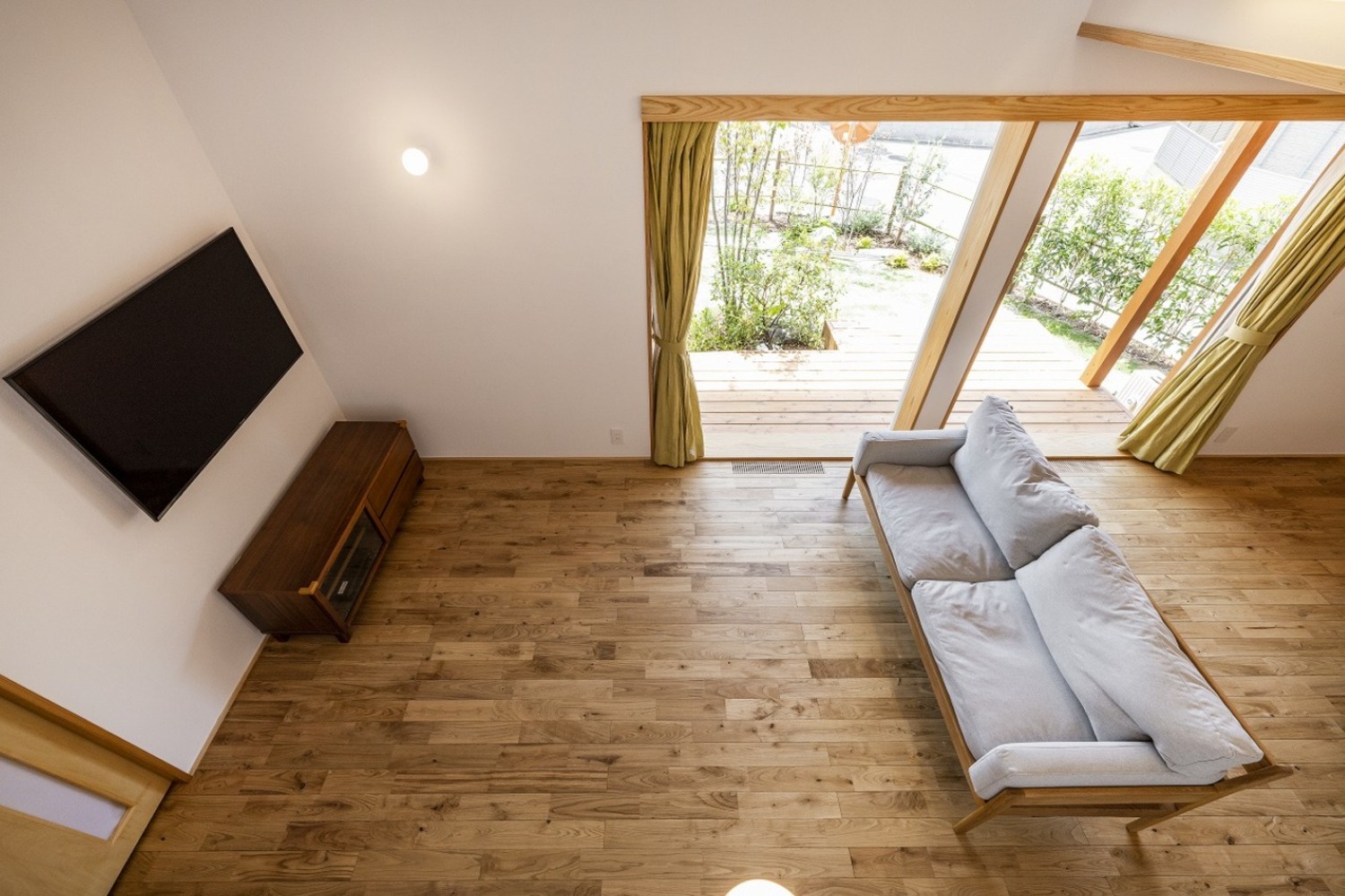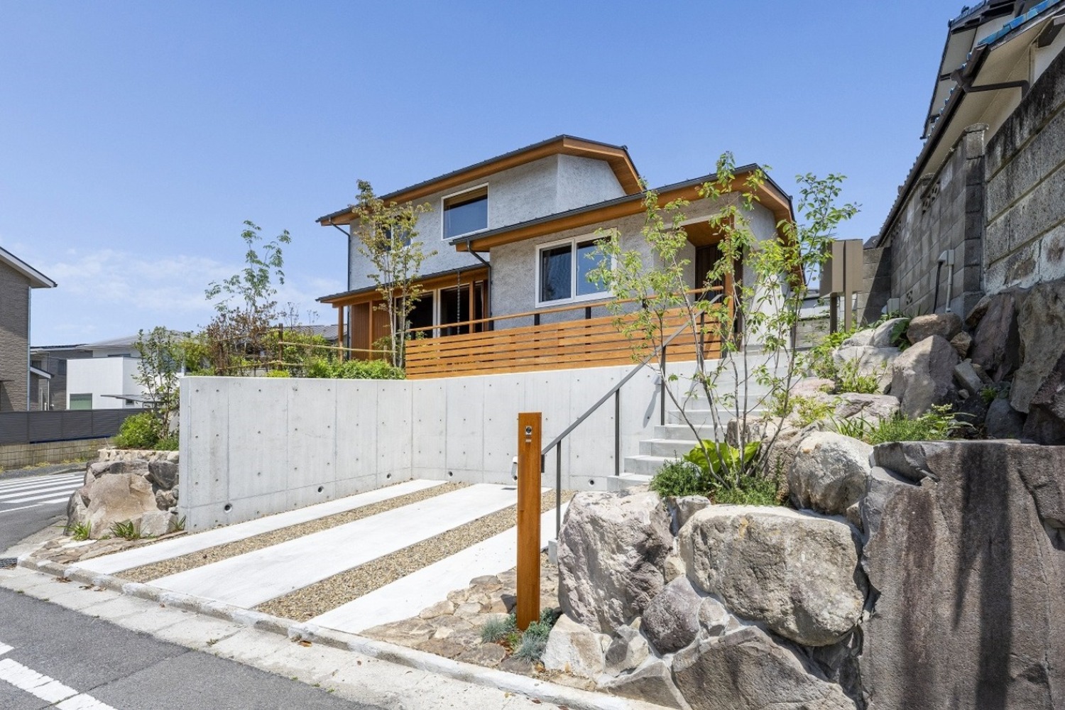 道路からの高低差、南と西に開いた敷地の持ち味を存分に活かした空間づくりを。