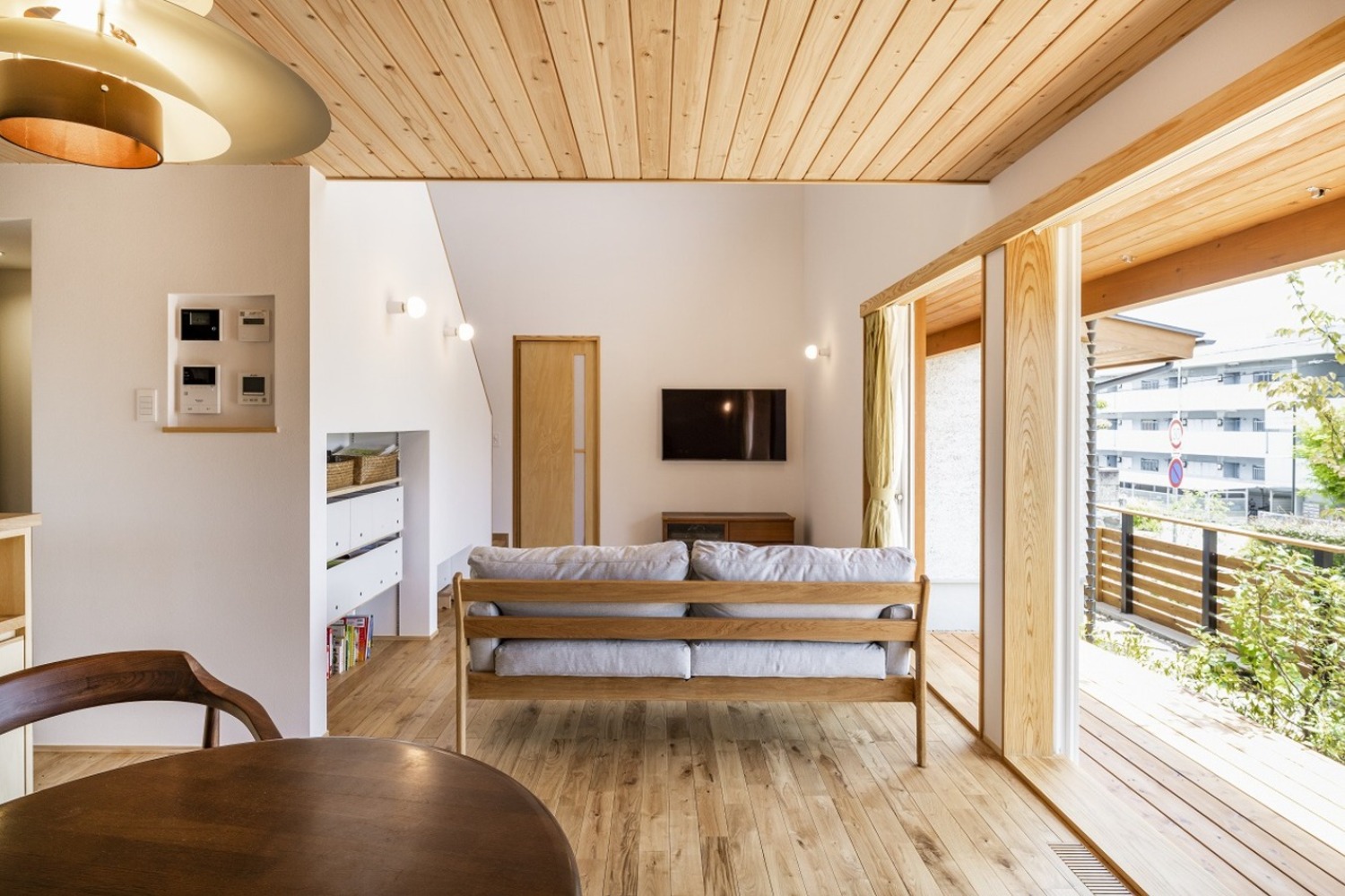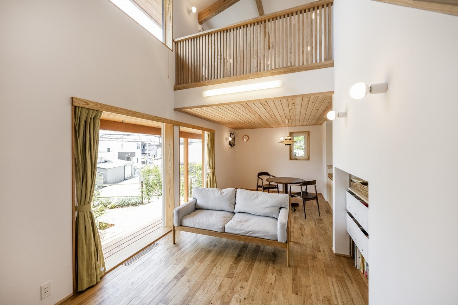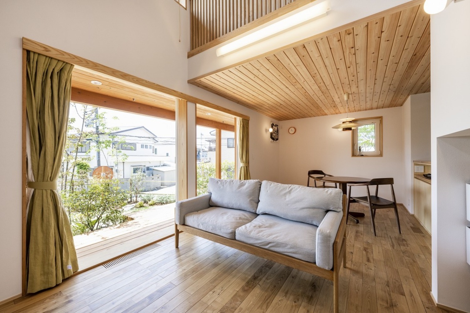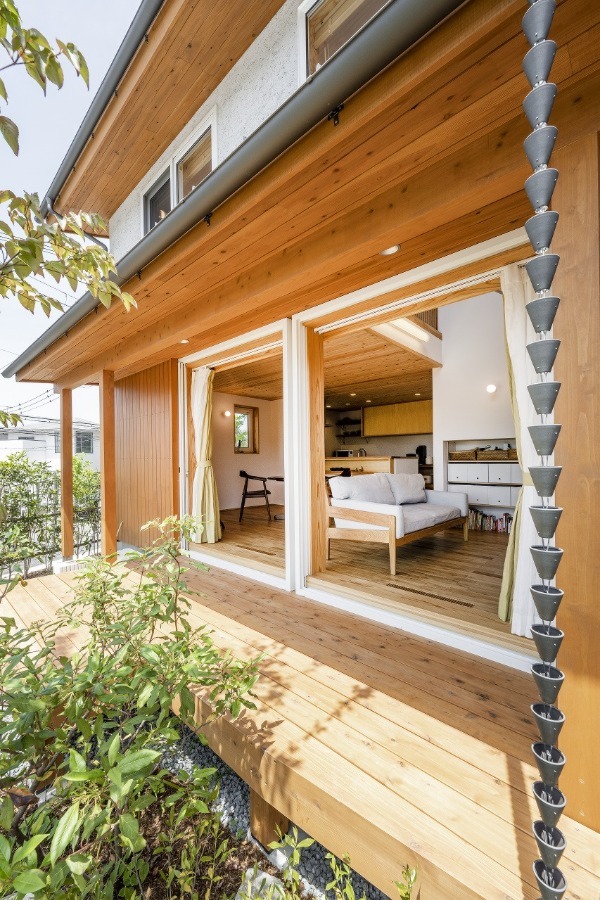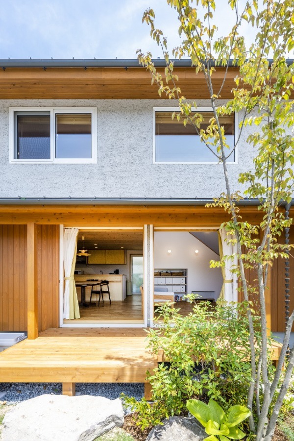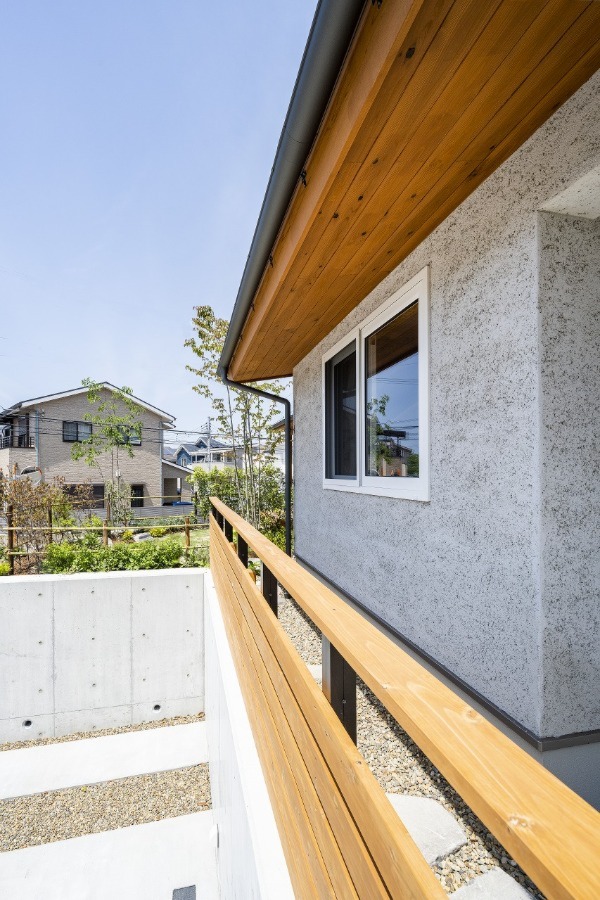 道路からの高低差、南と西に開いた敷地の持ち味を存分に活かした空間づくりを。