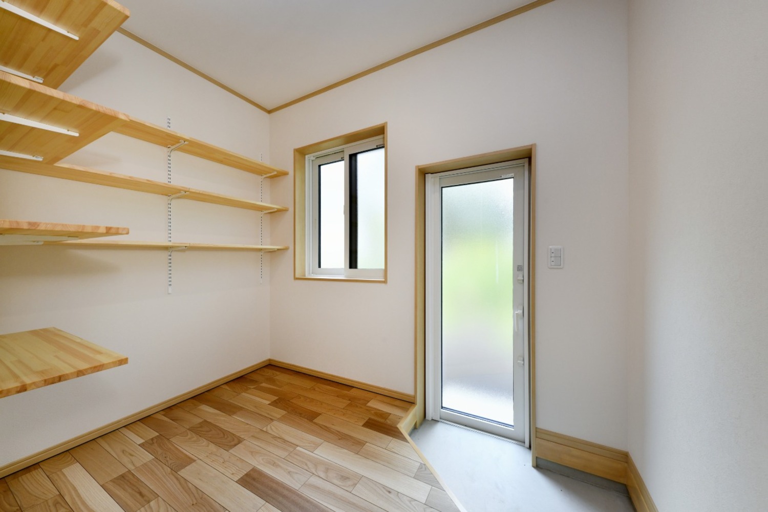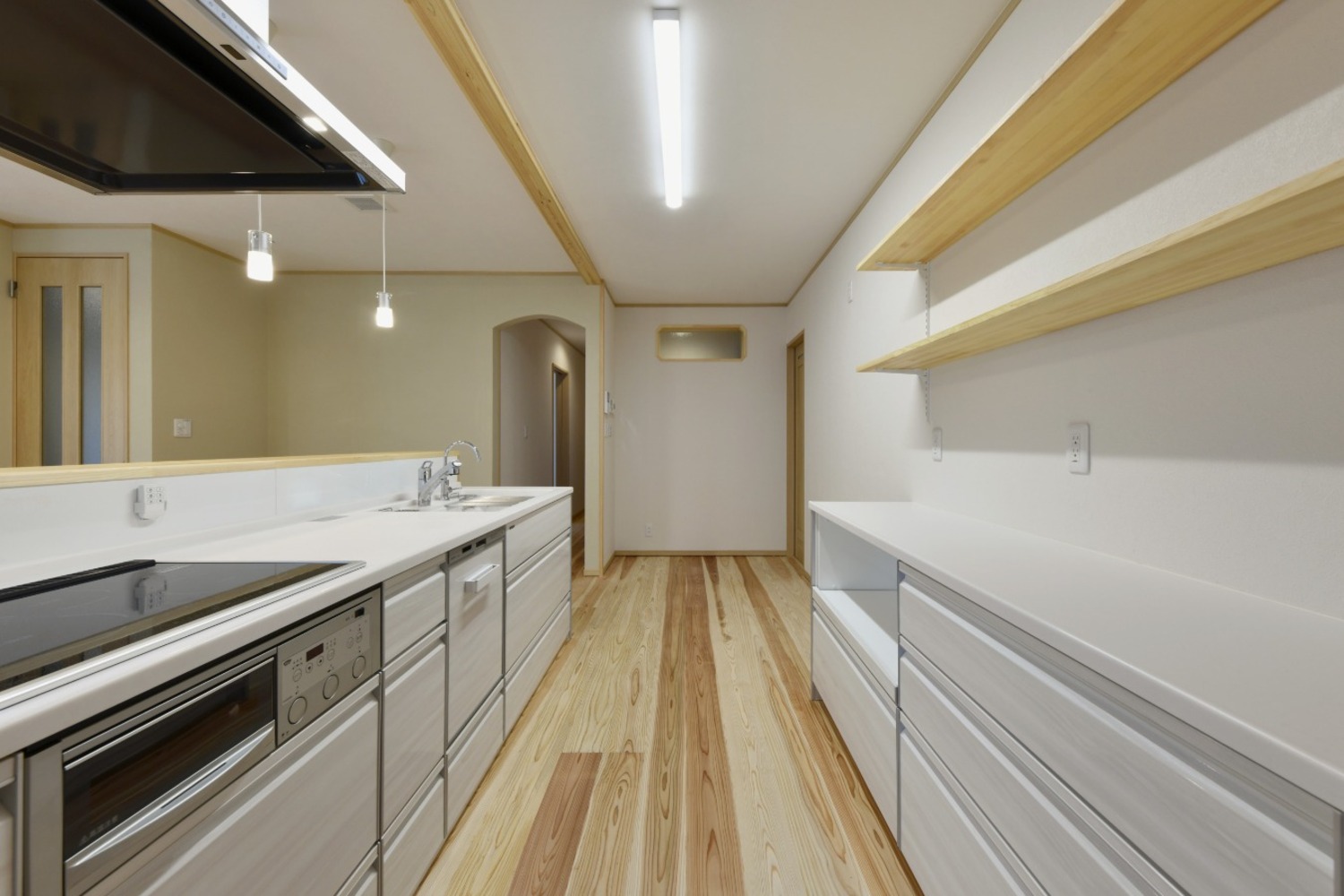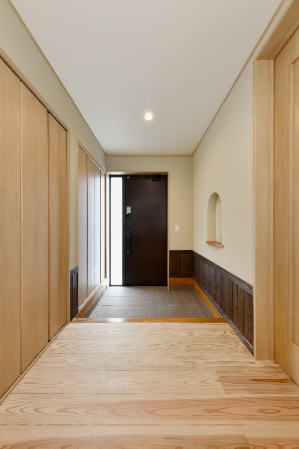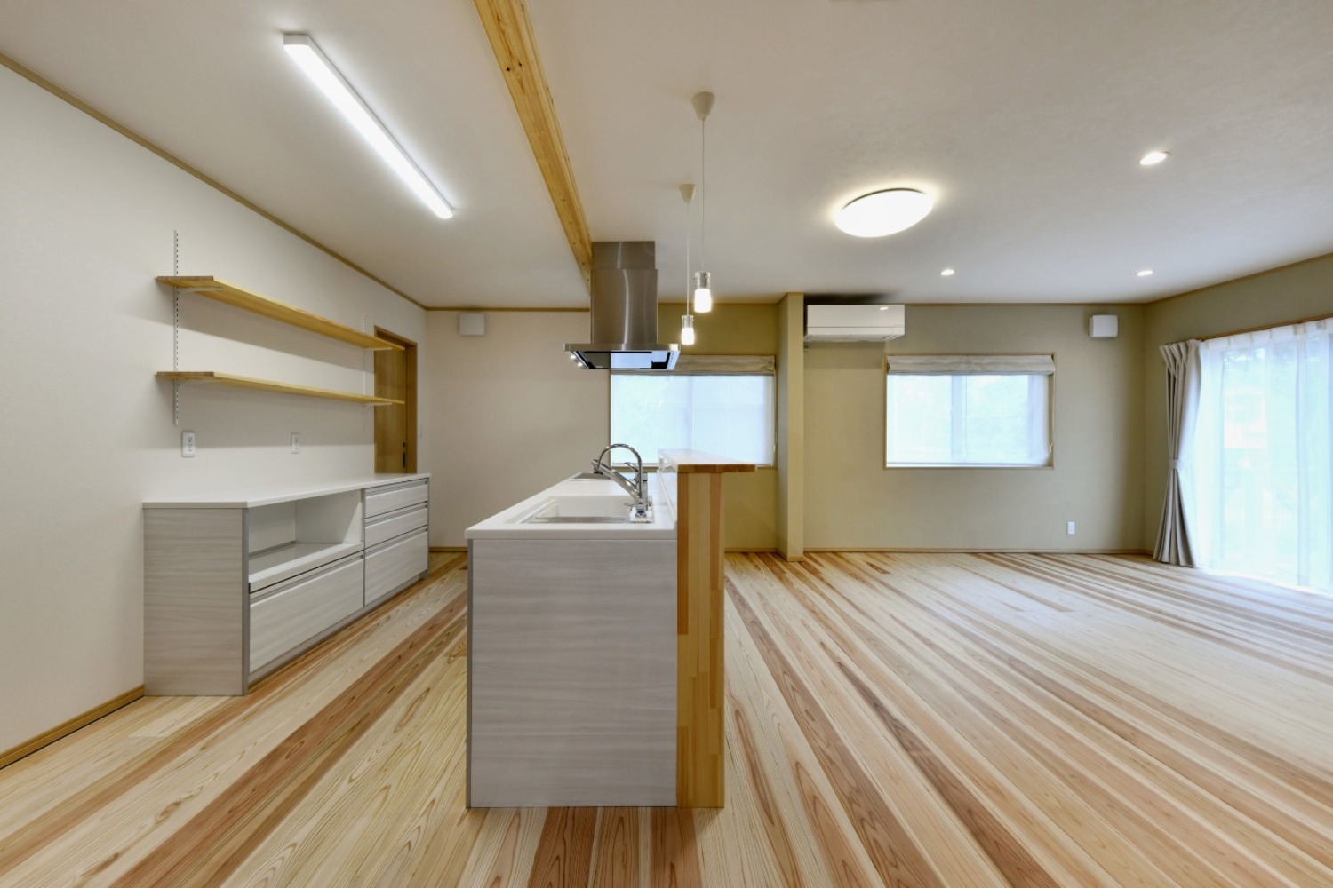 杉の無垢フローリングやシラス塗り壁など、大賀おすすめの自然素材で仕上げました。