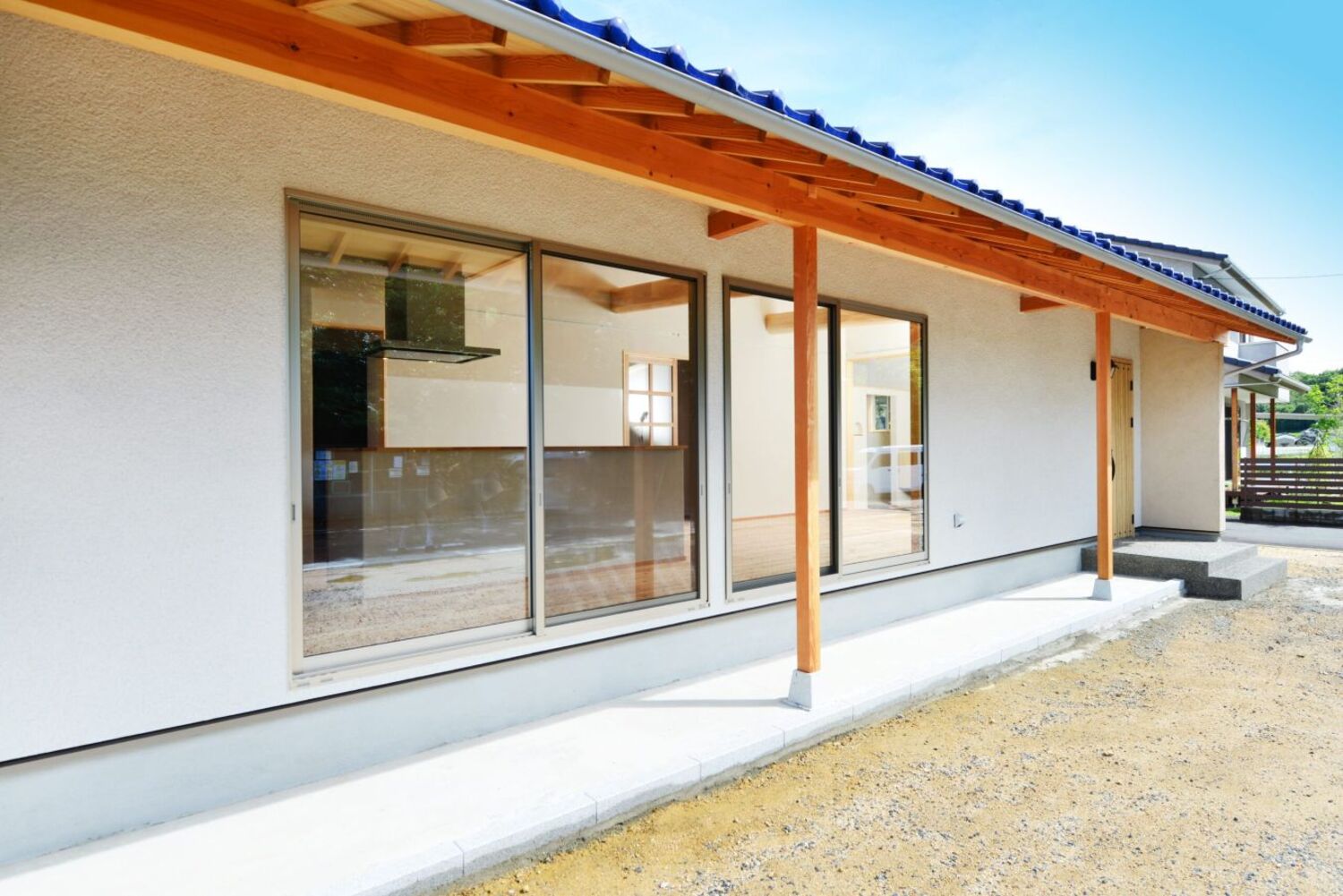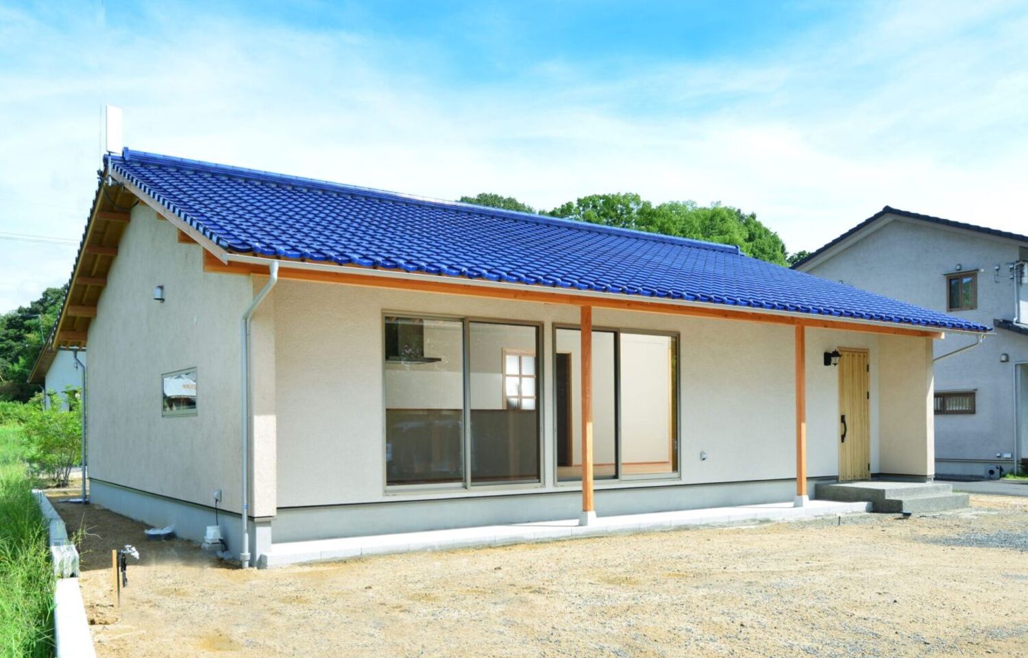 2本の太鼓梁が出迎えてくれる自然素材の平屋