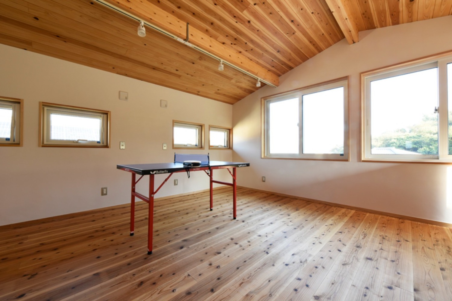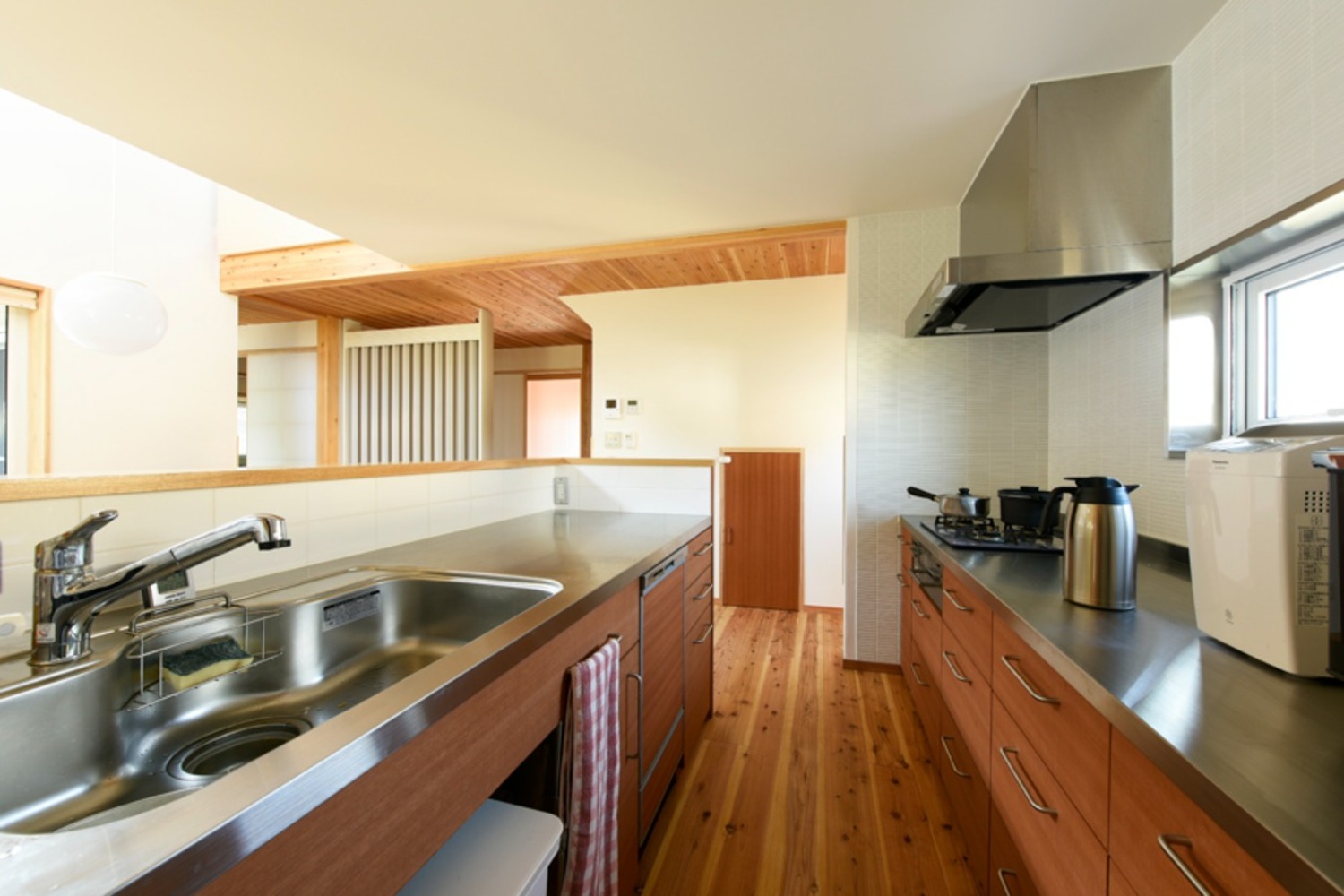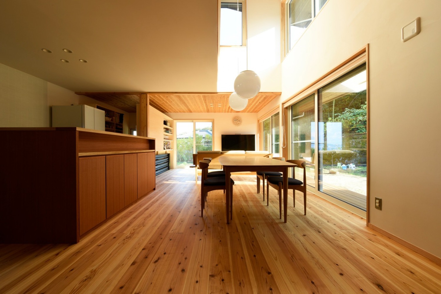 パッシブデザインで設計された室内は、冬はたっぷりと日差しを取り入れることもでき、夏は軒や庇でしっかりと直射日光の侵入を防いでいるので、快適な室内環境が実現。そして、更なる快適空間を目指して、「F-CON(光冷暖)」もご採用いただきました。F-CON(光冷暖)は輻射型の冷暖房設備のため、まだ小さなお子様にも安全で安心して運転することが可能。「夏は外に広がる雑木林を眺めながら、まるで避暑地にいるかのようです」と暮らし心地を表現していただきました。そして、「この家を知ったら、みんなエヌテックさんで家を建てたくなると思いますよ」とのお言葉も。
