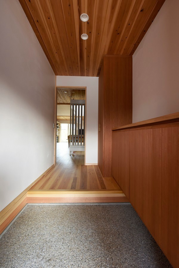 理科の先生であるMさまは、エヌテックのホームページを見て、「自分が家を建てるならここしかない!」とご決断されたそうです。具体的には、エネルギーをたくさん使い快適環境をつくるのではなく、エネルギーをできるだけ使わないパッシブデザインで快適を獲得し、かつ省エネにするという家づくりの考え方が理にかなっていると感じたとのこと。二世帯住宅といっても、様々な形がありますが、Mさまには、親世帯は個室だけを設え、キッチンなどの水周りは共有型にすることをご提案しました。