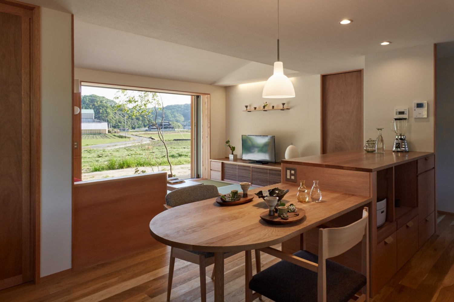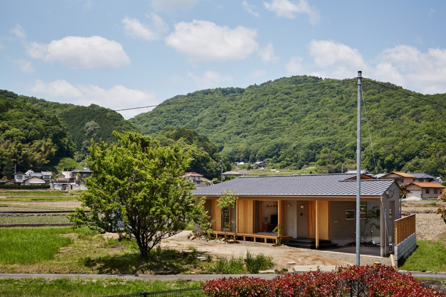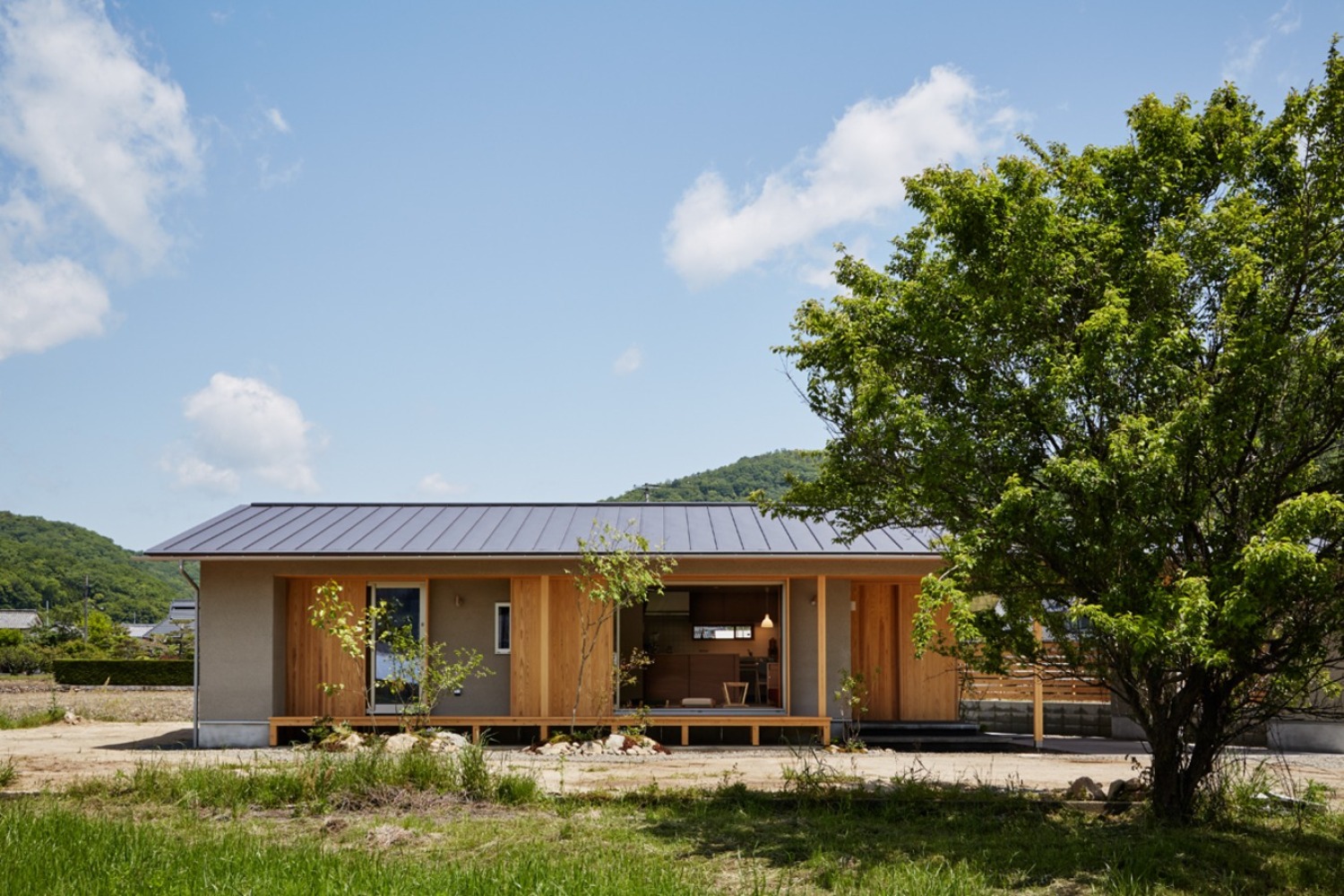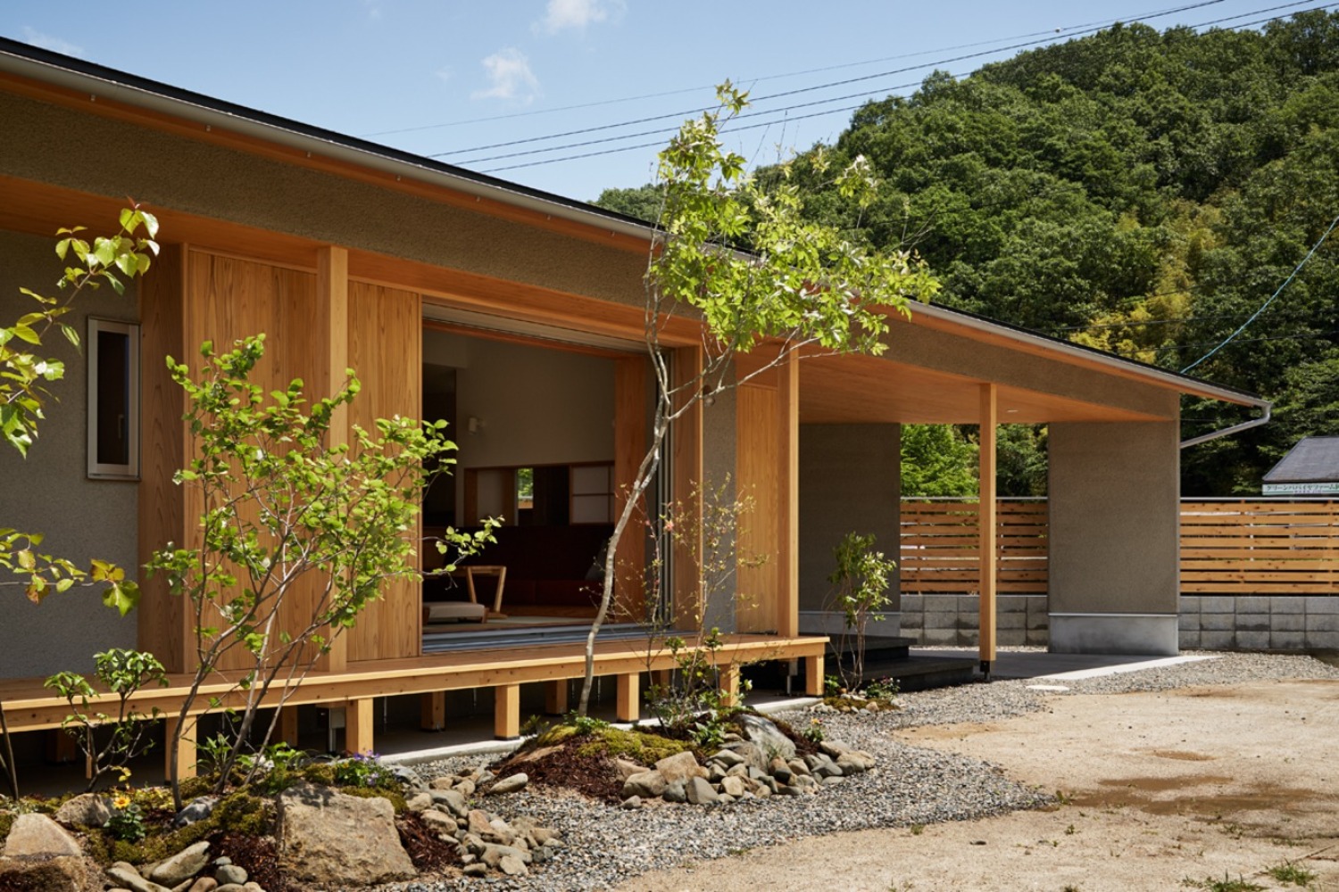 軒を深く伸ばし、のびやかに自然と暮らしがつながります。