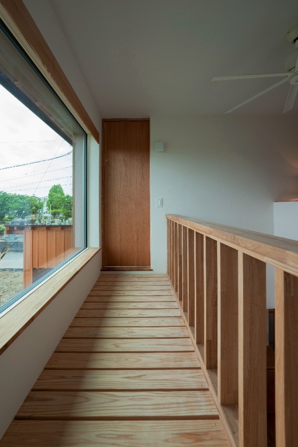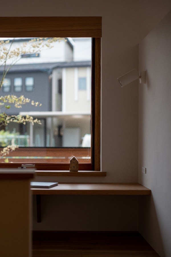 春のひるさがり、家の各所に配置したピクチャーウィンドウより光冠と新緑と桜を楽しむ家。