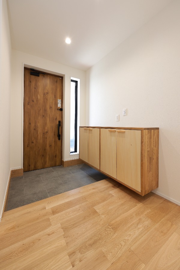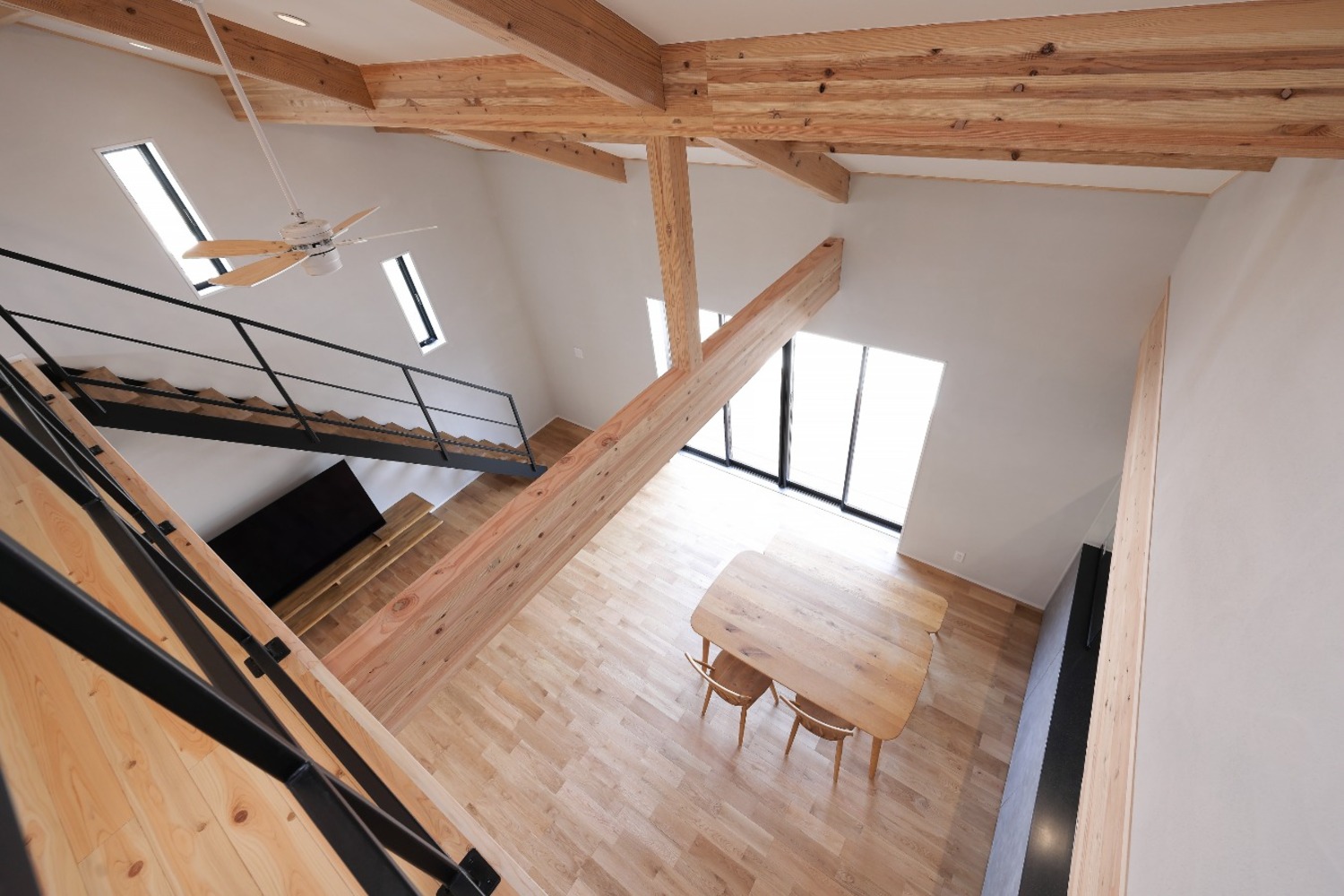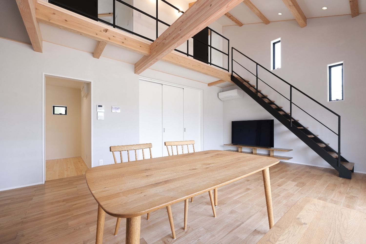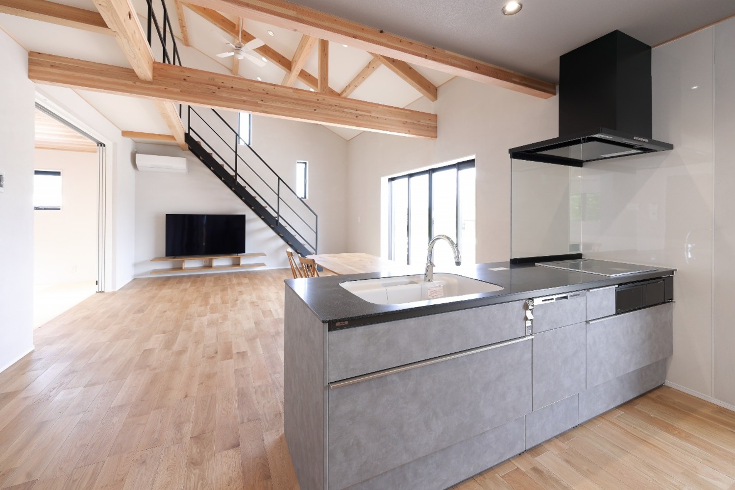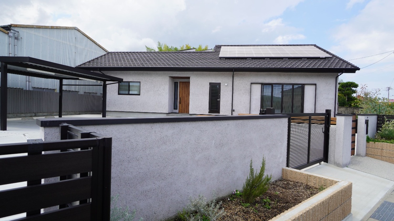 外装:スーパー白州そとん壁W W-131スチロゴテ仕上げ、LDK内装:薩摩中霧島壁 SN-4 なで切り仕上げ