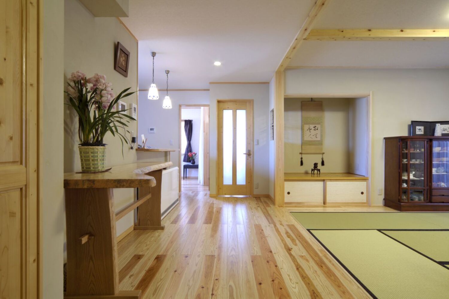 畳リビングと坪庭のある和モダンな家