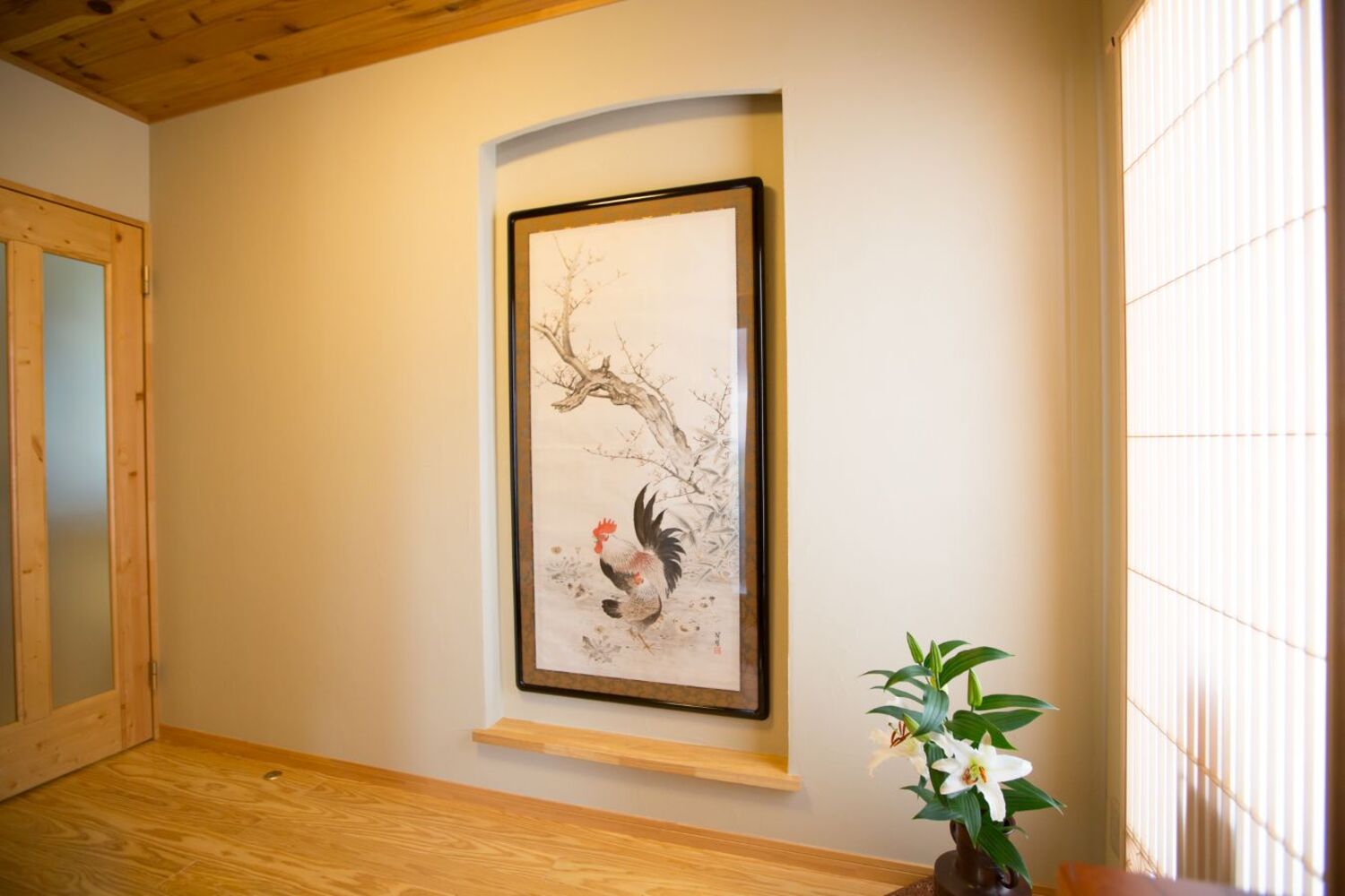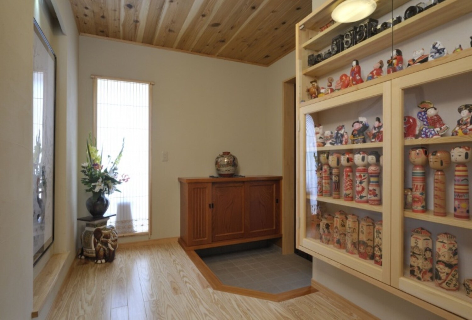 外壁一部:スーパー白洲そとん壁W W-121 スチロゴテ仕上げ、内装:中霧島壁ライト L-21