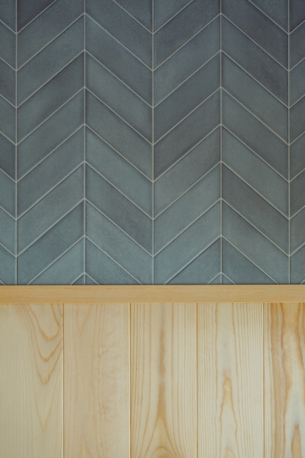 施主様の好きな色がグリーンだということで、グリーンの陶器瓦とタイルを取り入れました。