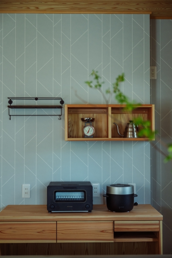 内装は、デザイン性のあるお気に入りのクロスで、心地よい空間が魅力のお家です。