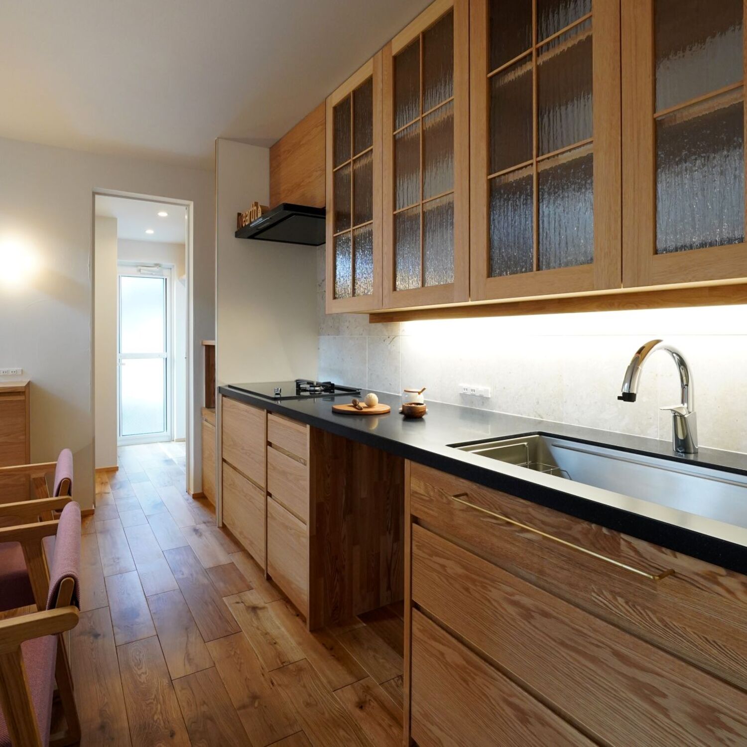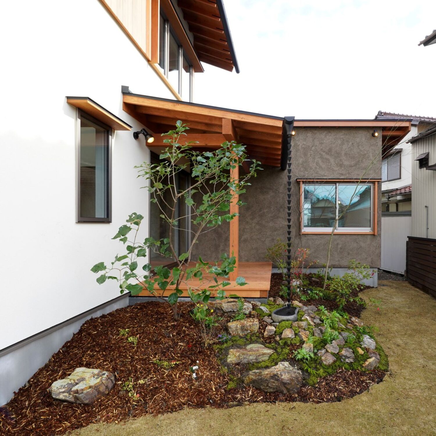 住宅が密接隣接する住宅地で、低山の連続する峰を仰ぎ見る住まい。
