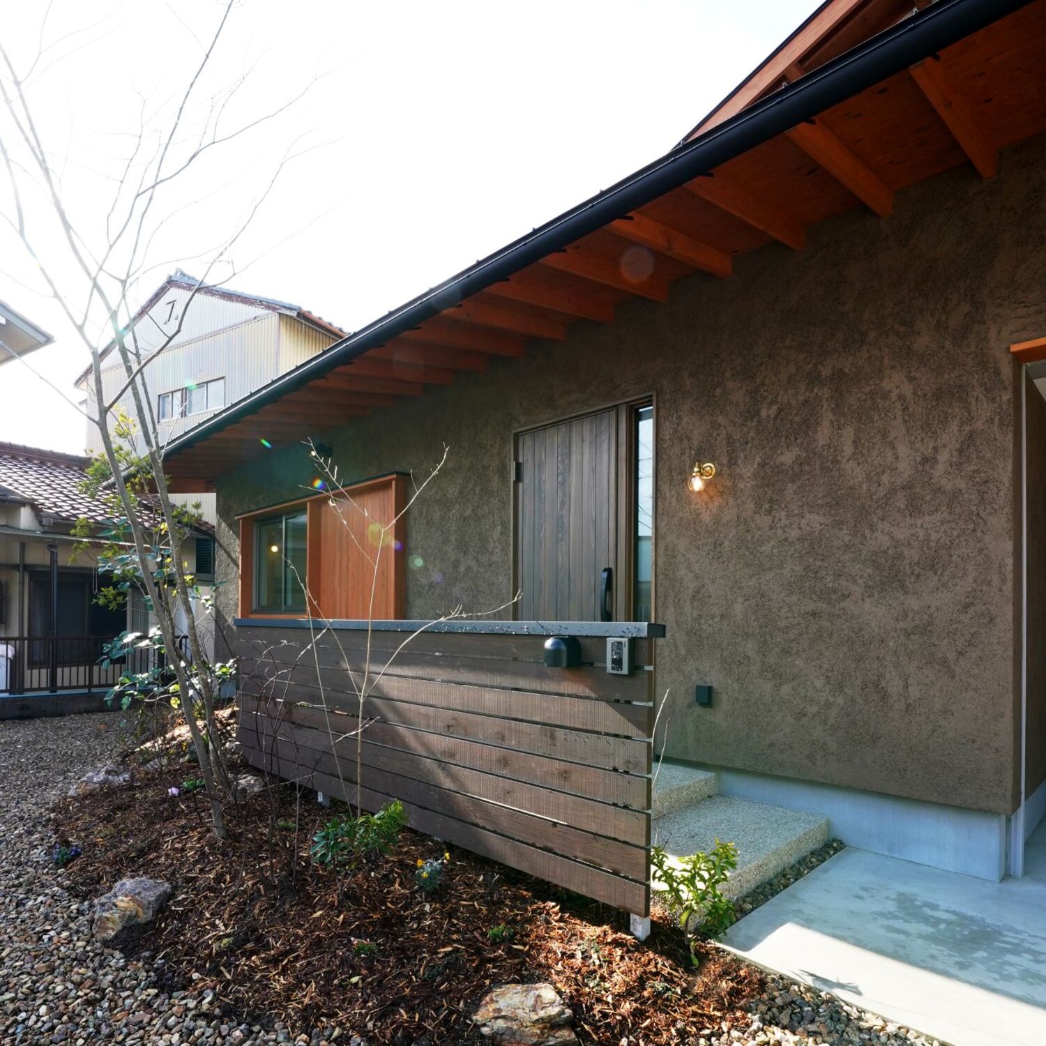 外壁一部:スーパー白洲そとん壁W W-133 スチロゴテ仕上げ
