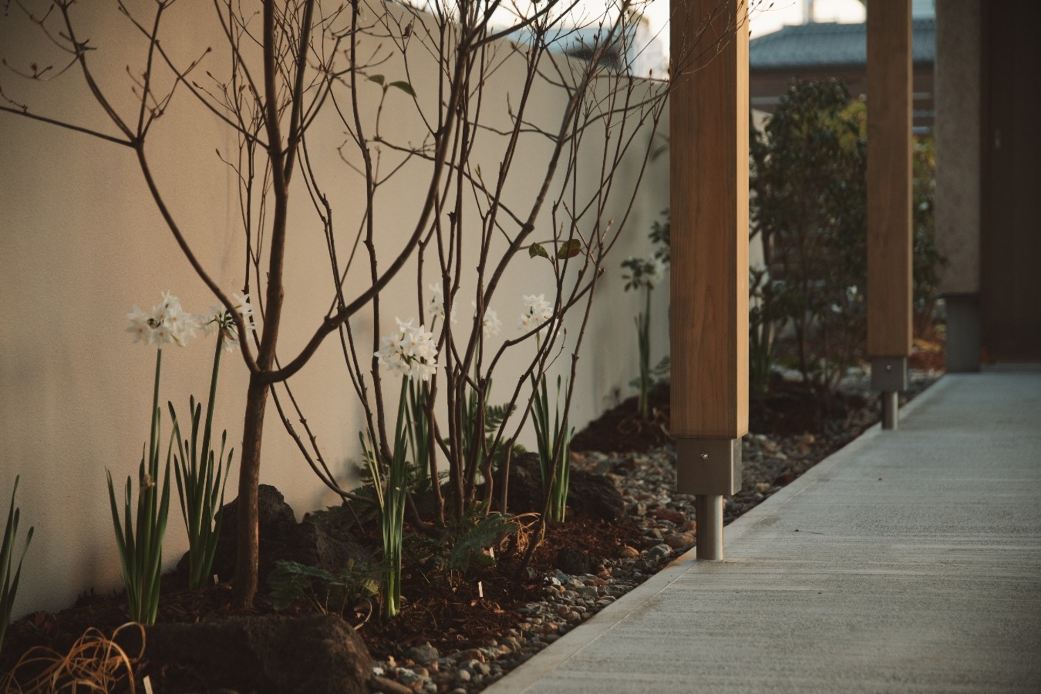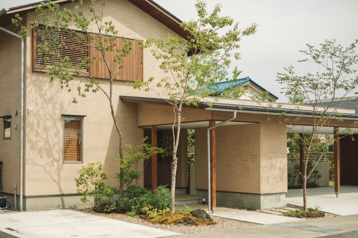 外壁には表情豊かなスーパー白洲そとん壁を使用し、美しく落ち着いた風合いが街並みに静かに溶け込みます。
