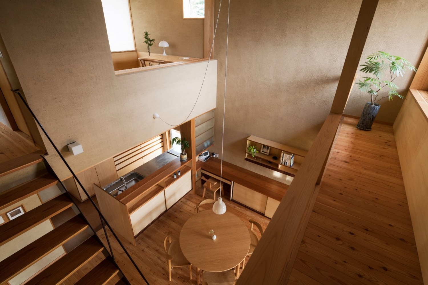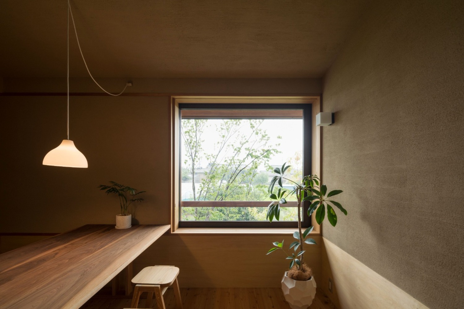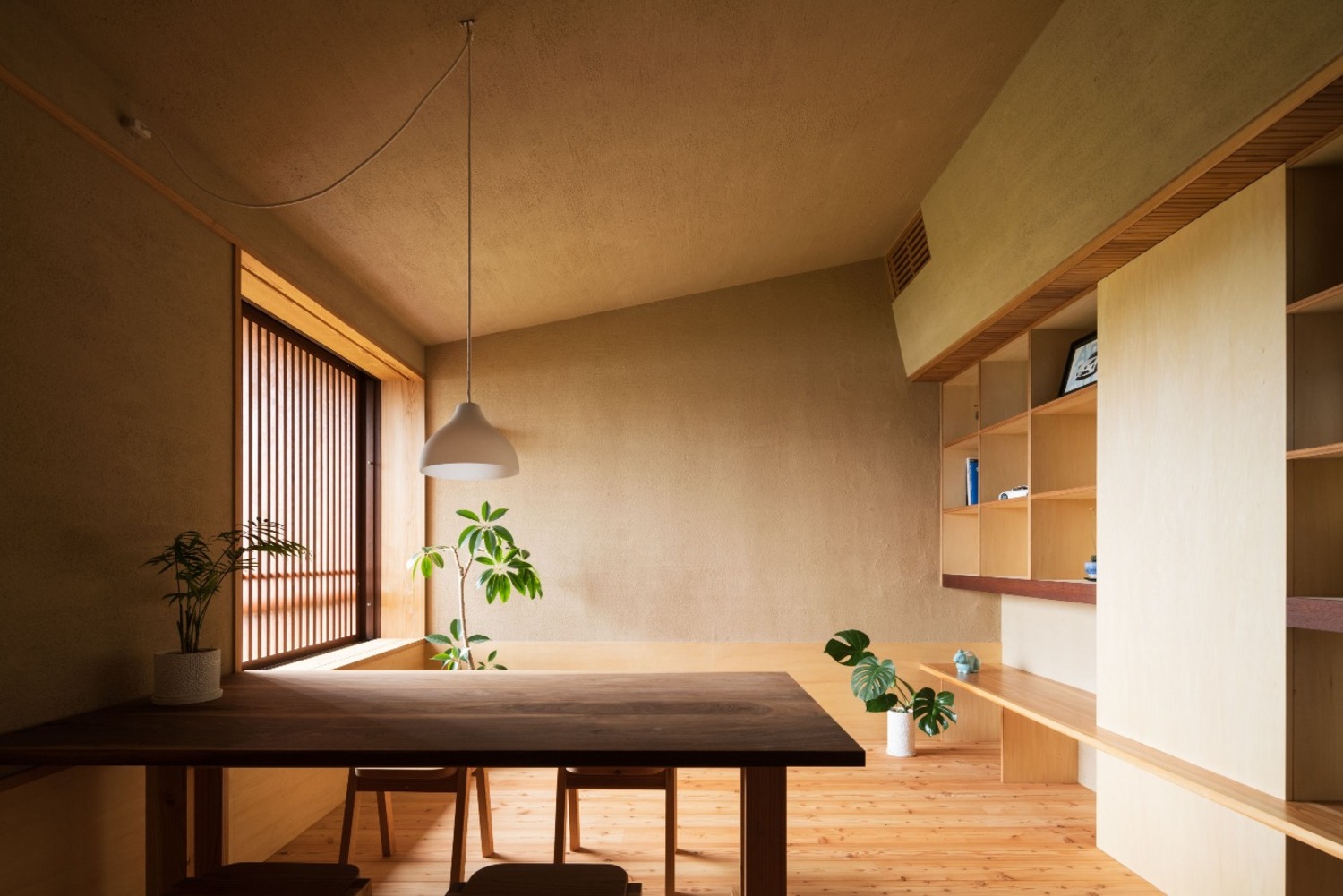 外壁:スーパー白洲そとん壁W W-129 スチロゴテ仕上げ、内装:薩摩中霧島壁