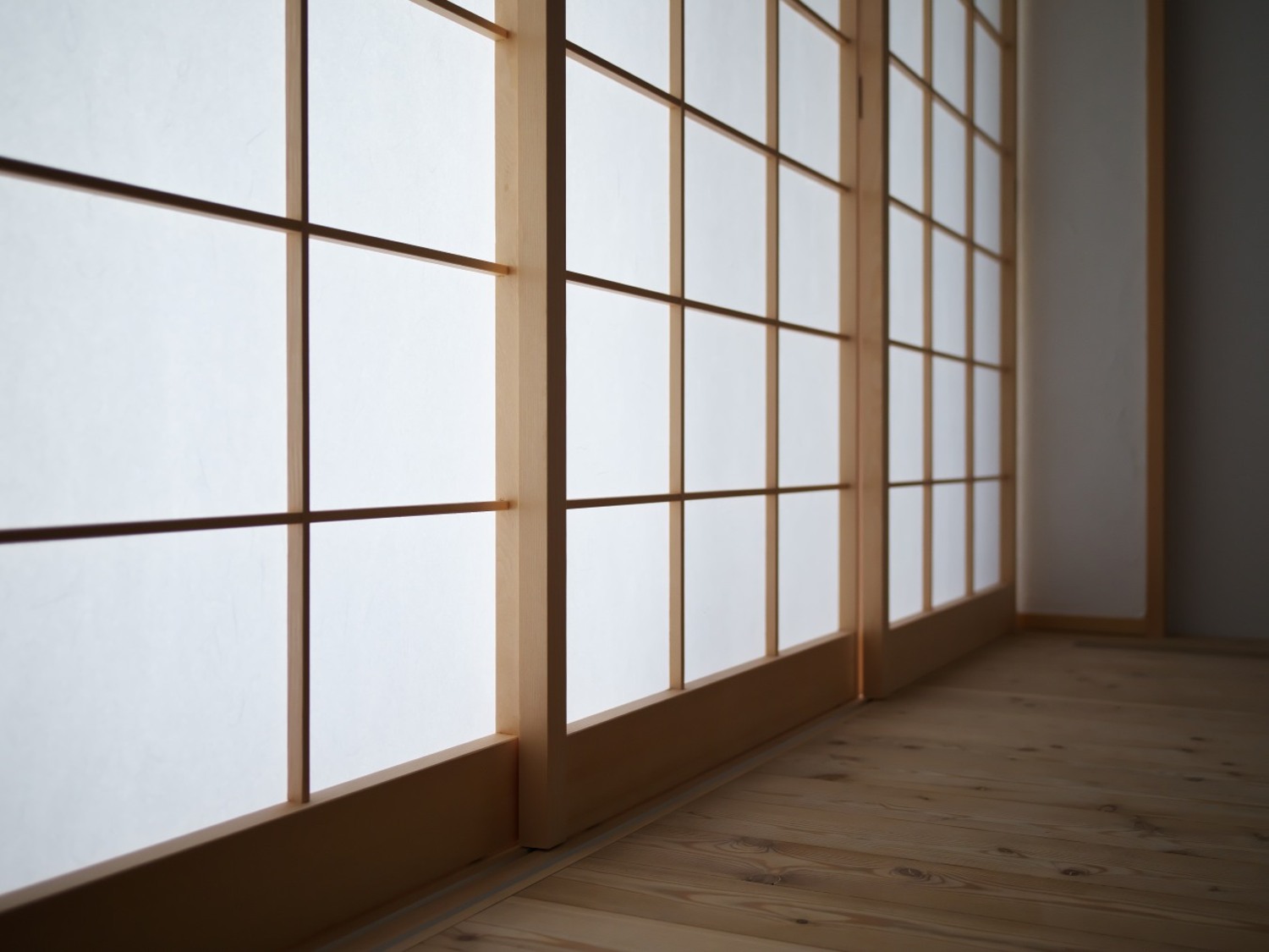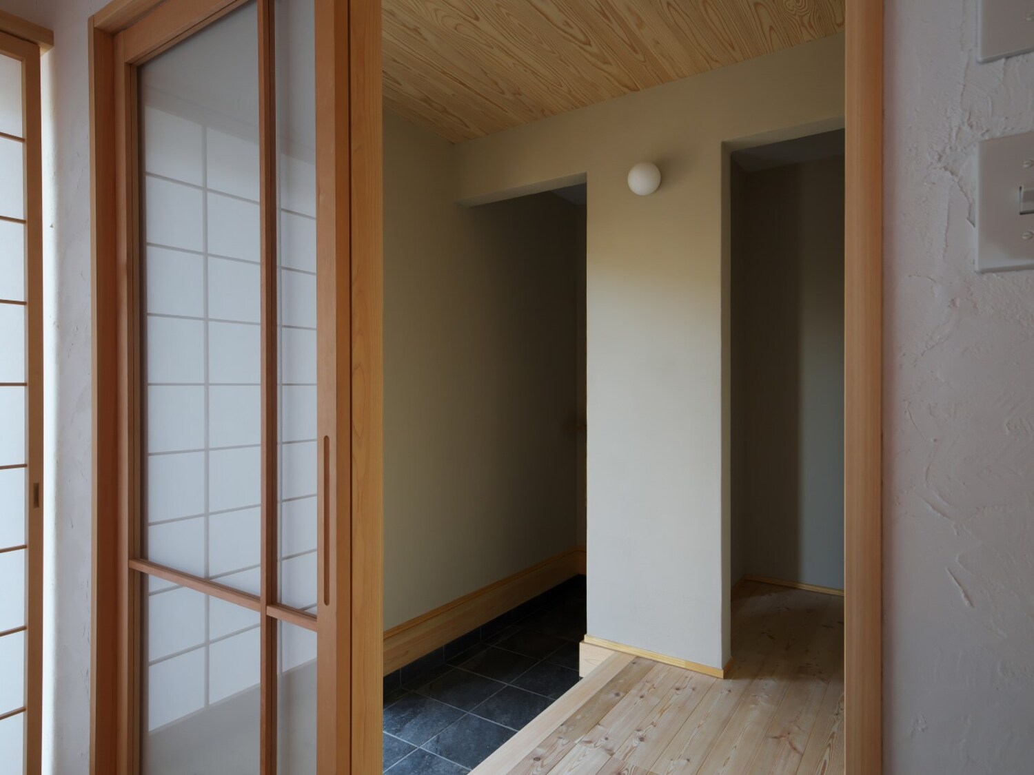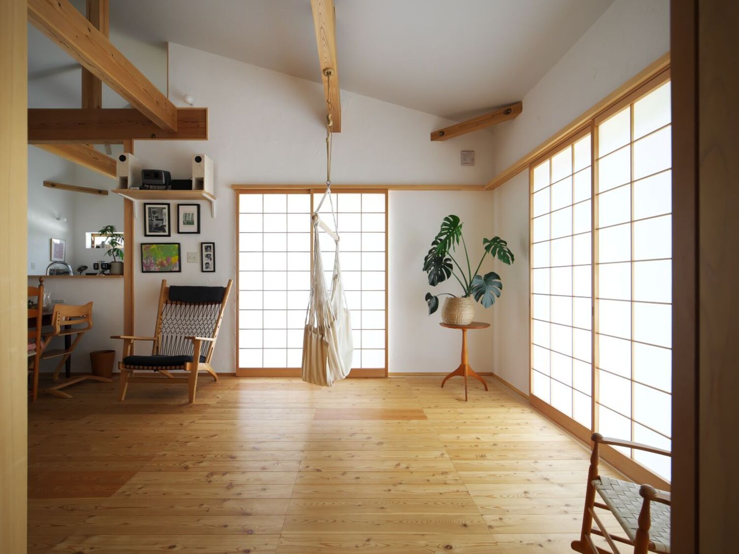 無垢材のぬくもりと、障子越しに差し込むやわらかな光が調和するLDKを中心とした住まい。