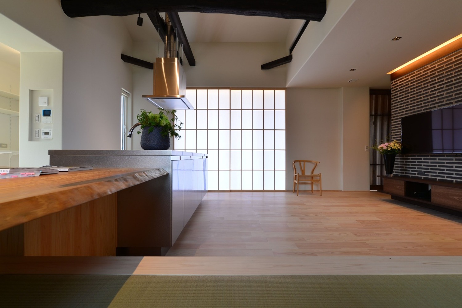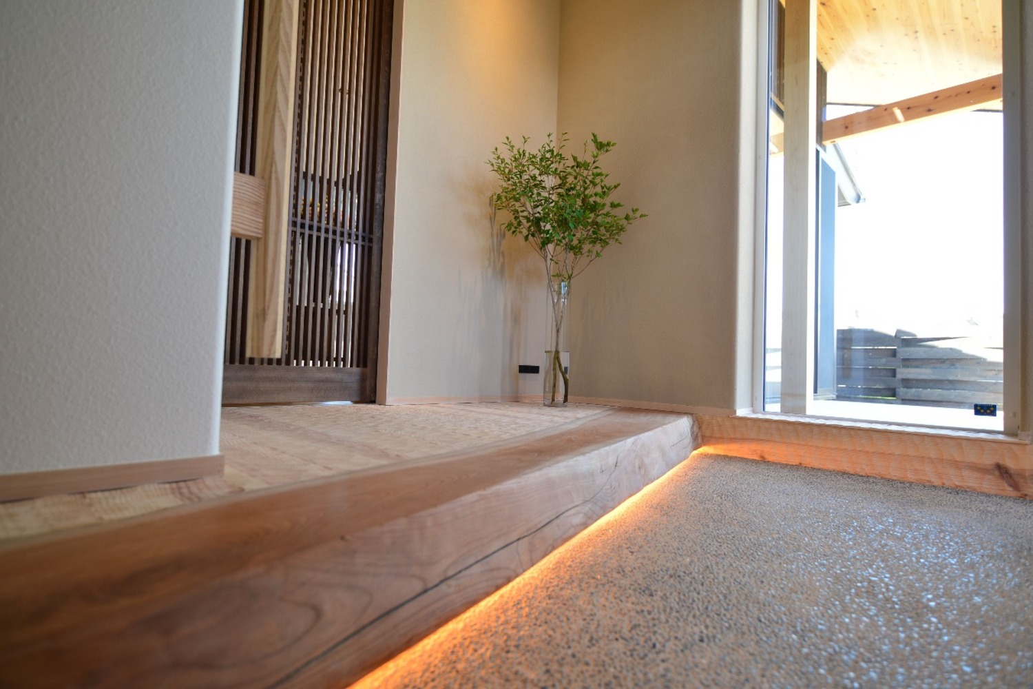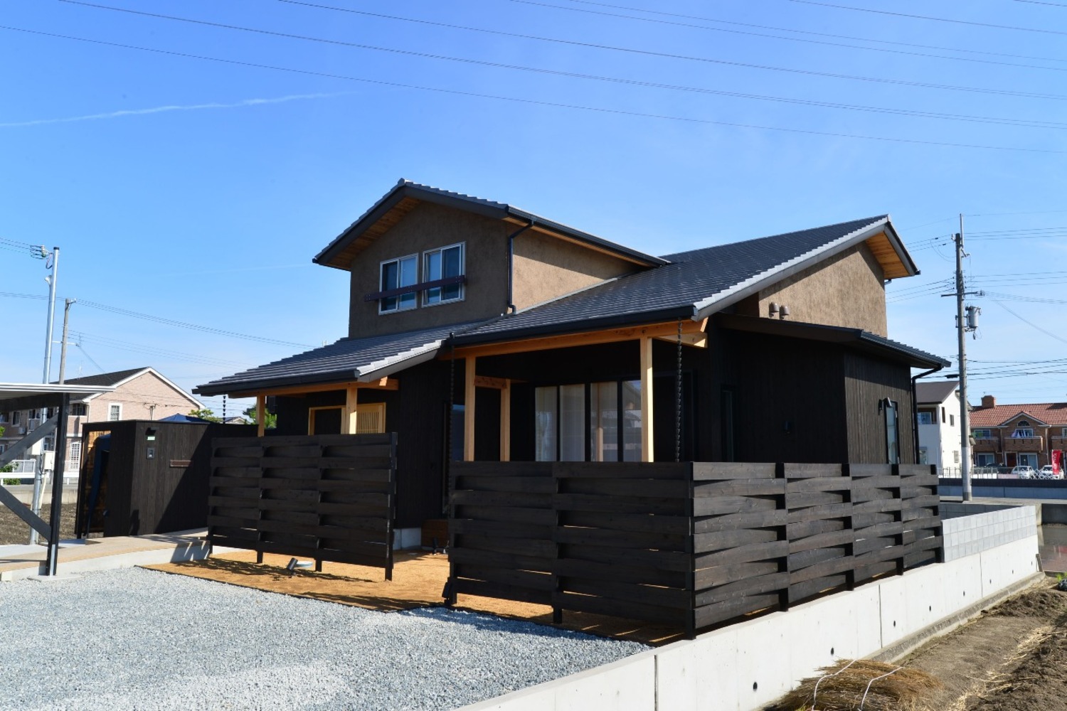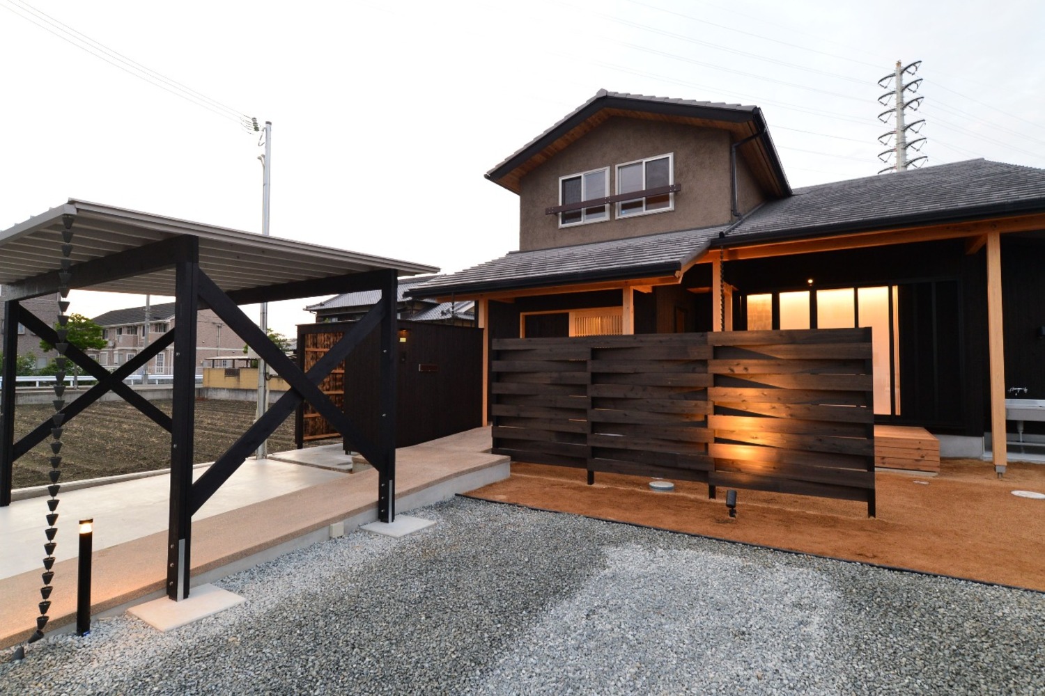 和の素材を感じウッドデッキのある家